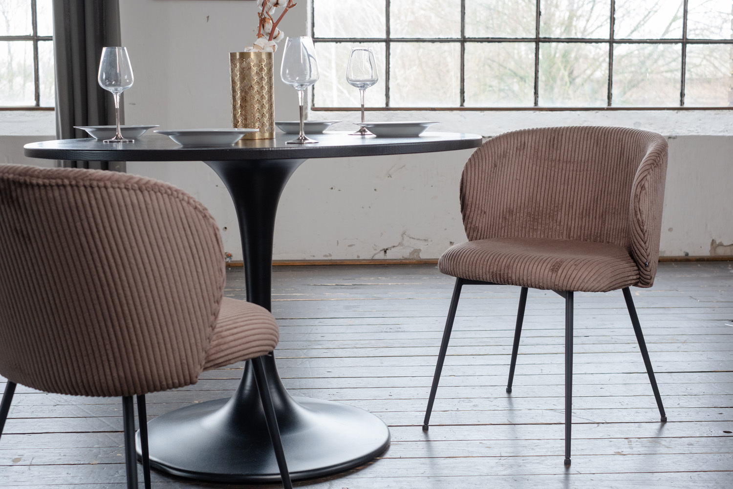 Descubra la silla de comedor LENA de KAWOLA: elegancia atemporal y excelente confort. La moderna tela de pana añade acentos de estilo y le invita a pasar horas acogedoras en la mesa de comedor.