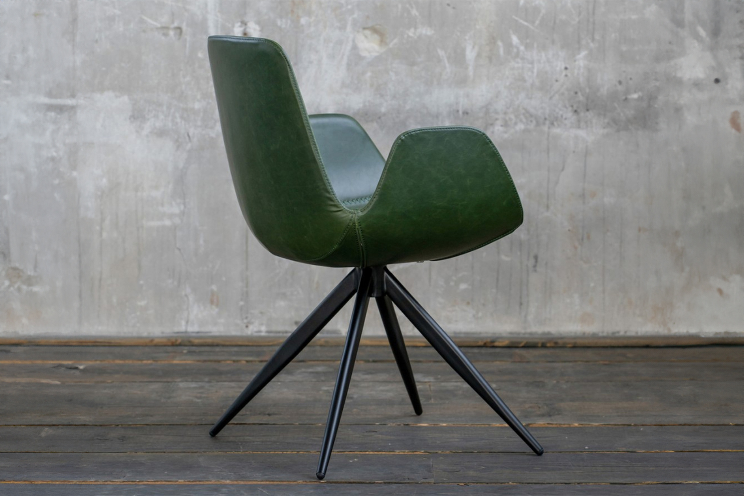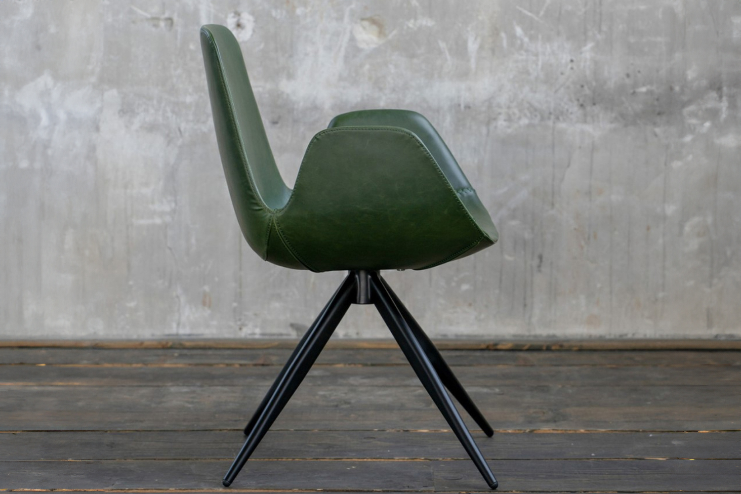 El tapizado del asiento es de resistente piel sintética, especialmente agradable al tacto. Las patas de la silla son de color negro, por lo que contrastan perfectamente con la moderna forma del tapizado del asiento.