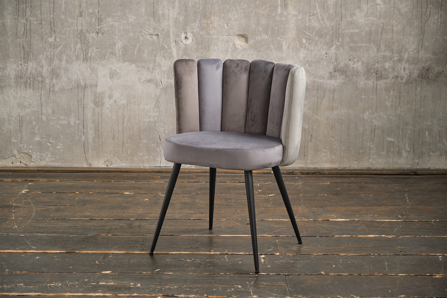 Información sobre el producto "2.ª oportunidad Silla KAWOLA Silla de comedor JADA Terciopelo gris pié negro"