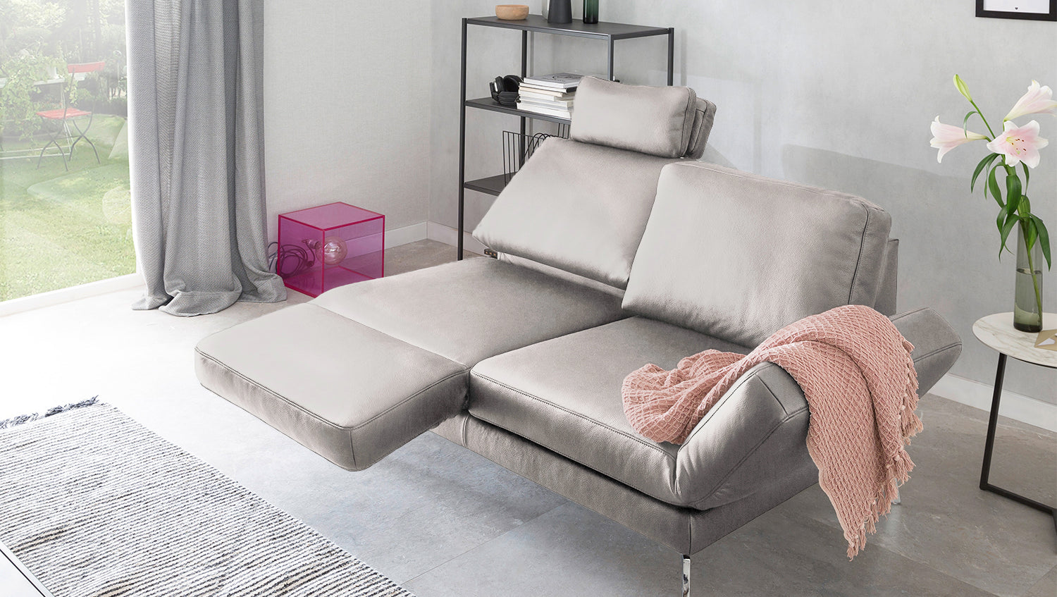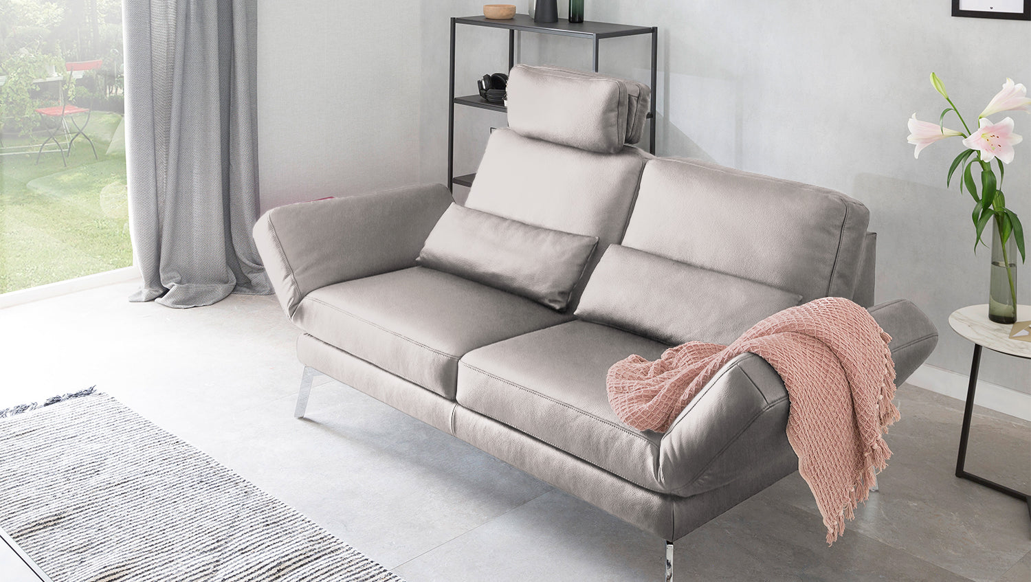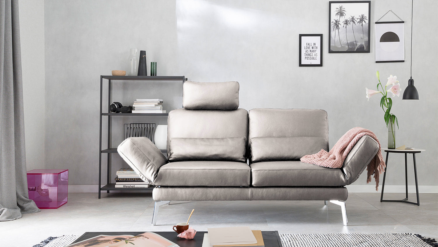 Sofá KAWOLA HURRICANE de 2 plazas de piel gris claro