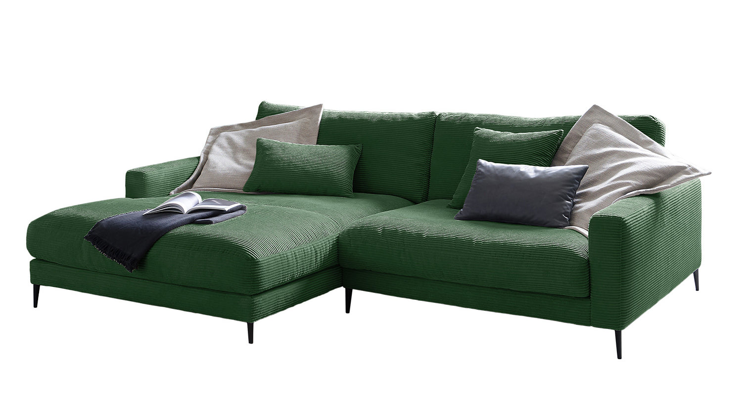 B-Ware KAWOLA rinconera sofa CARA sofa recamiere izquierda Pana esmeralda