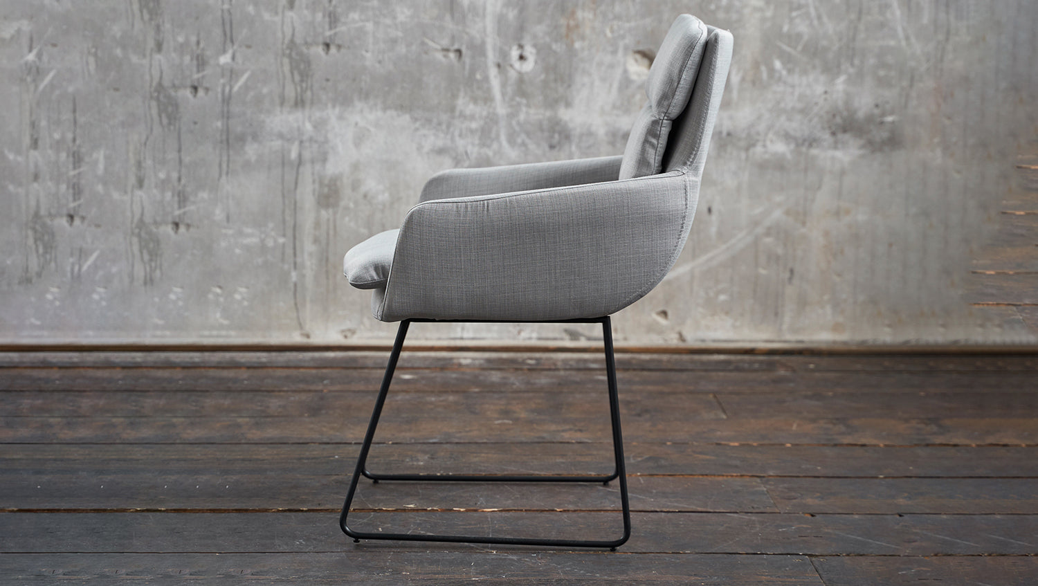 B-Ware KAWOLA silla VINCE silla de comedor tela gris claro base trineo negro