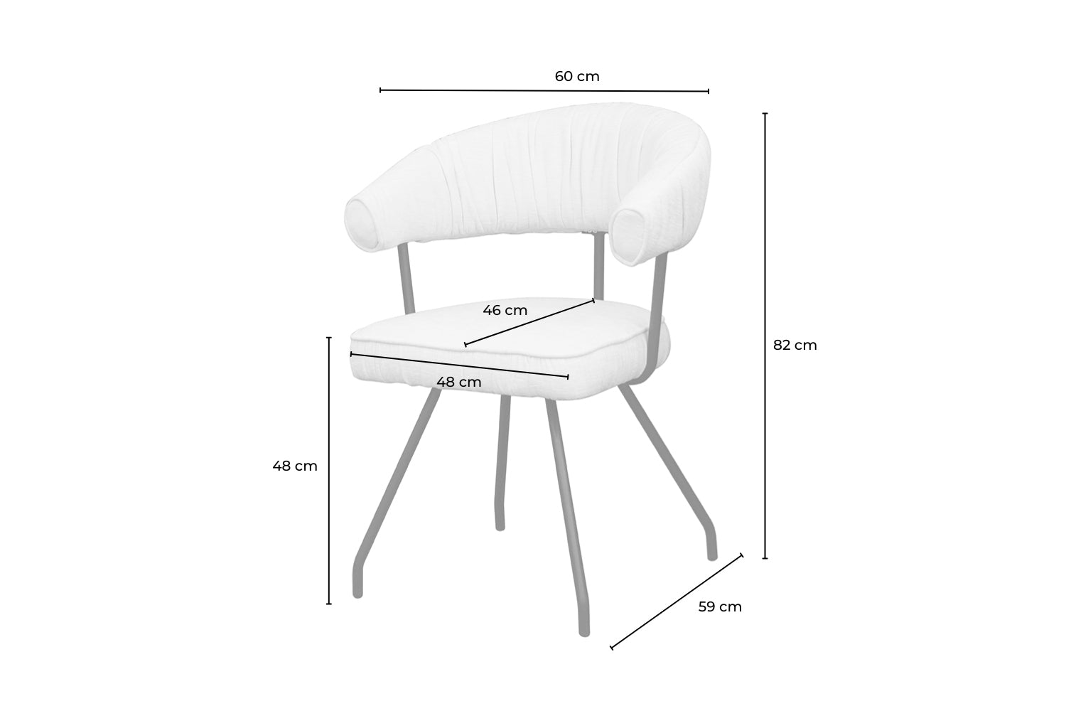 Esta silla es 2a oportunidad de una devolución de un cliente, que tiene ciertos defectos de menor importancia y por lo tanto es ofrecido por nosotros a un precio reducido. Los posibles defectos son: Arañazos en el armazón, marcas de presión, ligera suciedad y desviaciones de color en la tapicería, así como desgarros en la tela de los bajos. Por favor, eche un vistazo a las fotos de defectos directamente después del croquis. Sólo sirven para ilustrar posibles defectos. Se trata de imágenes de ejemplo generales y no representan el artículo en cuestión. El artículo no presenta necesariamente todos los defectos indicados. Las telas y colores de tapicería que aparecen en las fotos de defectos tampoco se refieren a este artículo. La silla de comedor RUNA de KAWOLA es la combinación perfecta de diseño moderno y máxima comodidad de asiento. Con una anchura de 60 cm, una profundidad de 59 cm y una altura de 82 cm, es ideal para cualquier comedor. El cómodo asiento ofrece una altura de asiento de 48 cm, una profundidad de asiento de 46 cm y una anchura de asiento de 47 cm, para que pueda sentarse cómodamente. El tapizado de núcleo de muelles ensacados de alta calidad garantiza un confort de asiento de primera clase, mientras que las robustas patas de metal con recubrimiento de polvo en elegante color negro no sólo son robustas, sino también elegantes. RUNA es la elección ideal para cualquiera que valore la comodidad y un ambiente moderno. Gracias a su acabado de alta calidad y a su aspecto atemporal, la silla puede integrarse fácilmente en una gran variedad de estilos de interior. Añada la elegante y cómoda silla RUNA de KAWOLA a su comedor y disfrute de sus comidas con un elegante confort.