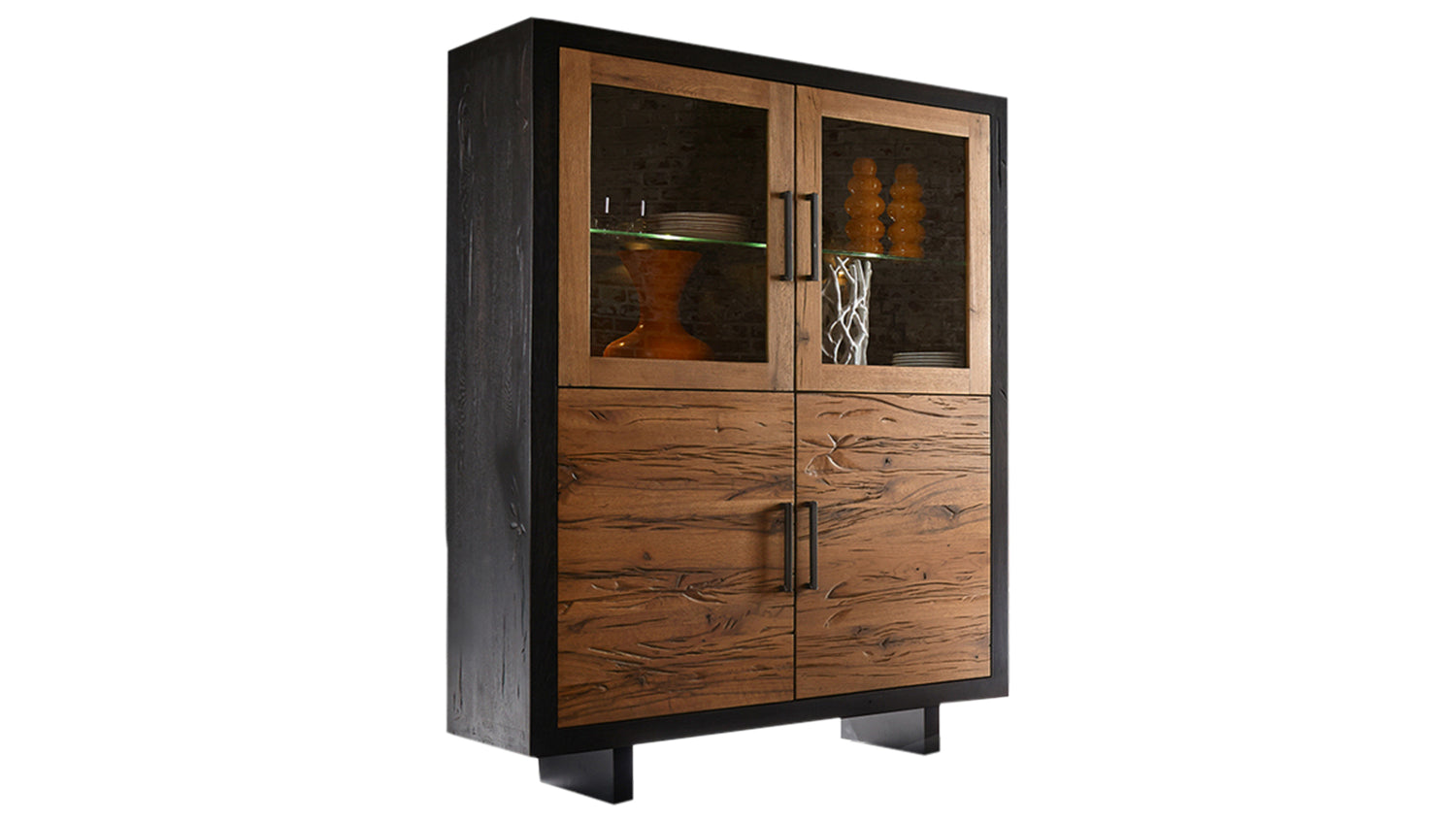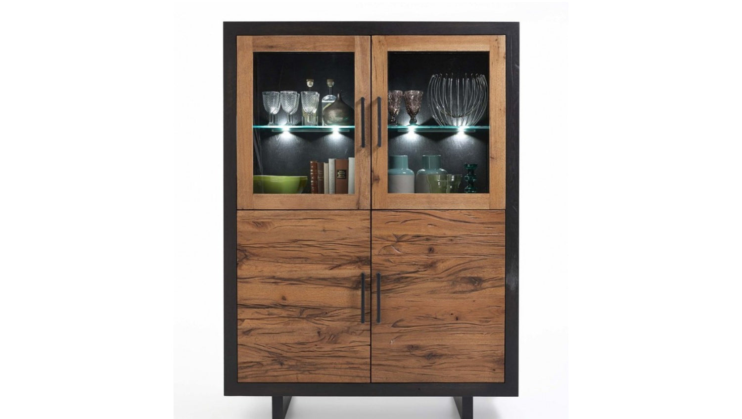El tablero alto de la serie GONA es el complemento perfecto para la Mesa de comedor. Su diseño confiere a la estancia un encanto nuevo y rústico y hará que su zona de estar brille con un nuevo esplendor. Detrás de las dos puertas del armario encontrará mucho espacio y sitio para guardar todo tipo de cosas. Las dos puertas de cristal son perfectas para colocar decoraciones bonitas y con estilo. La carcasa es de un bonito color negro, mientras que los frentes son de roble de viga en el color Old Bassano. El armario alto GONA es adecuado para muchos espacios. Queda muy bien tanto en el comedor como en el salón o en el pasillo. Ambos colores armonizan perfectamente entre sí y completan visualmente el diseño.