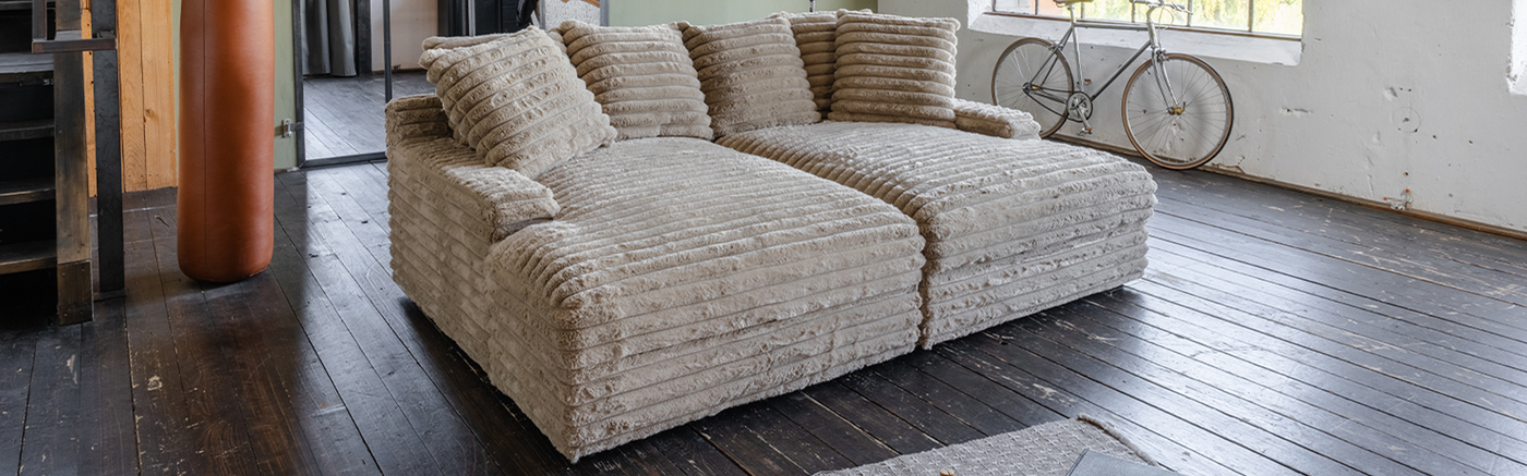Descubra el sofá grande CADY, disponible en dos colores modernos que combinan perfectamente con su hogar.