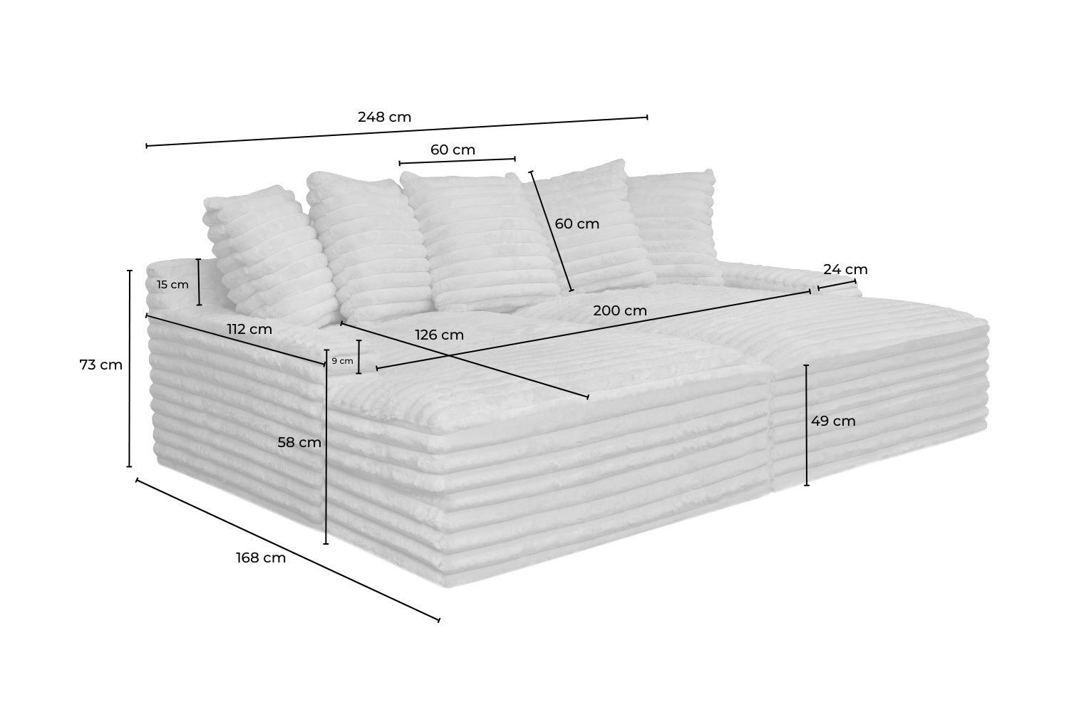 El Sofá extra ancho CADY de KAWOLA impresiona con su moderna funda de pana, que ofrece un aspecto y un tacto únicos gracias a sus nervaduras especialmente anchas. La pana está muy de moda e impresiona por su durabilidad y su tacto suave. Con una generosa anchura de 248 cm y una impresionante profundidad de asiento de 168 cm, CADY ofrece espacio para hasta 3 personas, perfecto para pasar horas de relax. El mullido confort del asiento, combinado con 6 grandes cojines de respaldo, garantiza un confort al más alto nivel. El tejido de pana se caracteriza por su bajo pilling, lo que favorece su longevidad, mientras que los robustos deslizadores de plástico garantizan la estabilidad y protegen el suelo. Ya sea para largas veladas en serie o para acogedoras reuniones, el sofá CADY es un verdadero punto culminante para su salón. Lleve confort y estilo a su hogar.