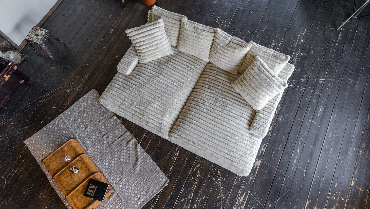 • ÓPTICA CON ESTILO - La moderna funda de pana hace que este sofá sea el centro de todas las miradas