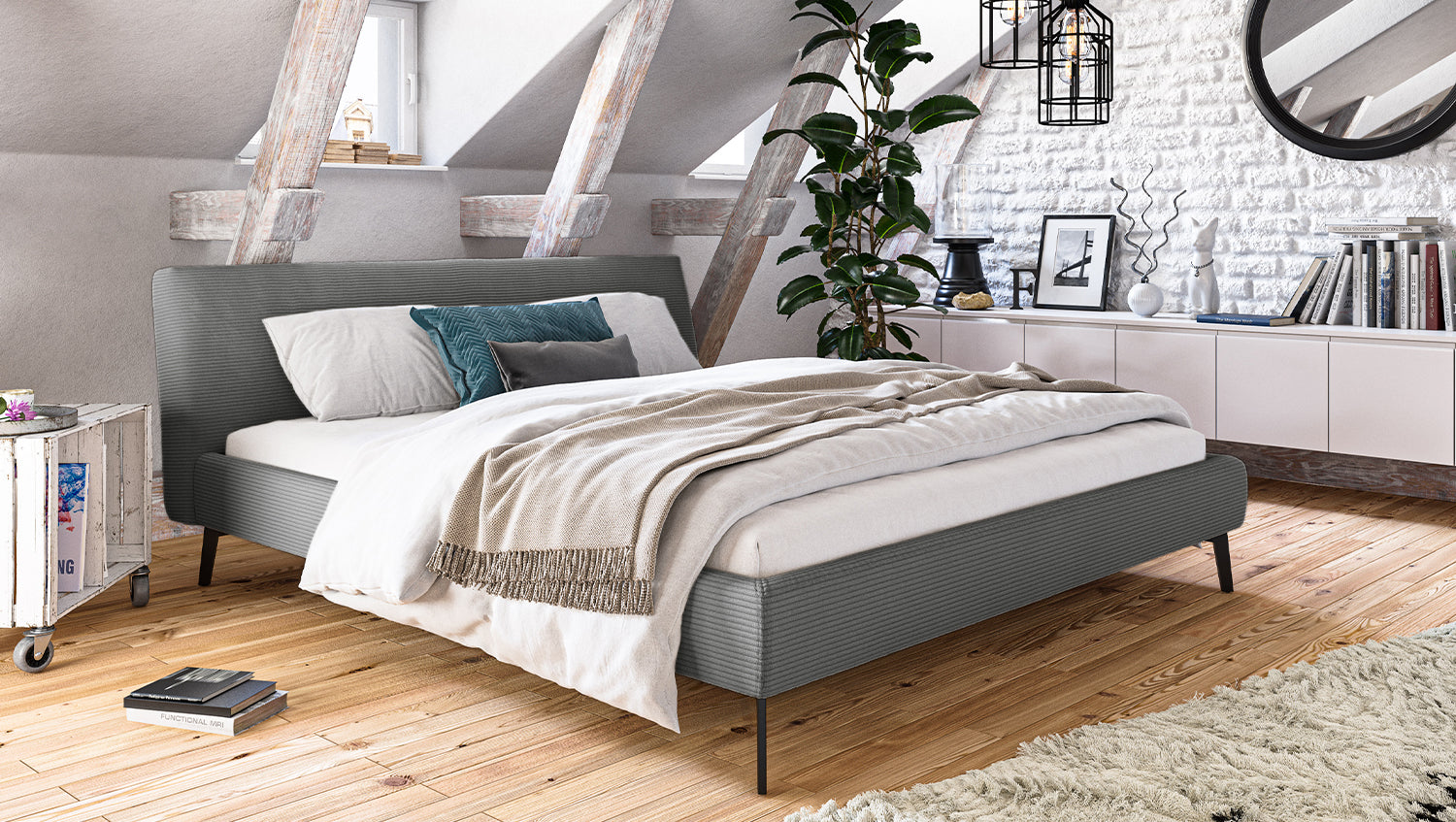 Sumérjase en la elegancia contemporánea con la cama tapizada VALERIE de KAWOLA. Su diseño claro al estilo de los lofts modernos marca nuevas pautas en la estética del hogar y combina minimalismo con el máximo confort. La funda de pana de alta calidad no sólo confiere a la cama un toque sofisticado, sino que también es agradable al tacto. Su aspecto cálido y acogedor combina a la perfección con una gran variedad de estilos de decoración, desde el clásico elegante hasta el contemporáneo-moderno. Destaca especialmente el cabecero tapizado de 87 cm de altura. La cama tapizada VALERIE de KAWOLA aúna confort y estilo en un solo mueble y es la elección ideal para un dormitorio de estilo contemporáneo. Dé a su habitación una armoniosa unidad de tapicería Pana y líneas limpias con esta elegante cama tapizada. Dé vida a su dormitorio y disfrute de noches de descanso en este diseño atemporal.