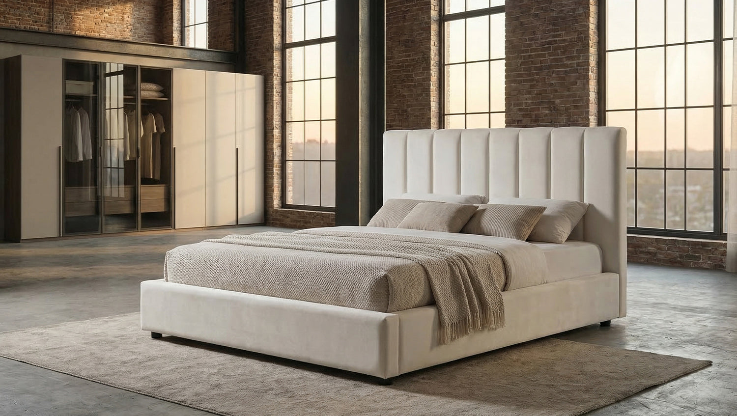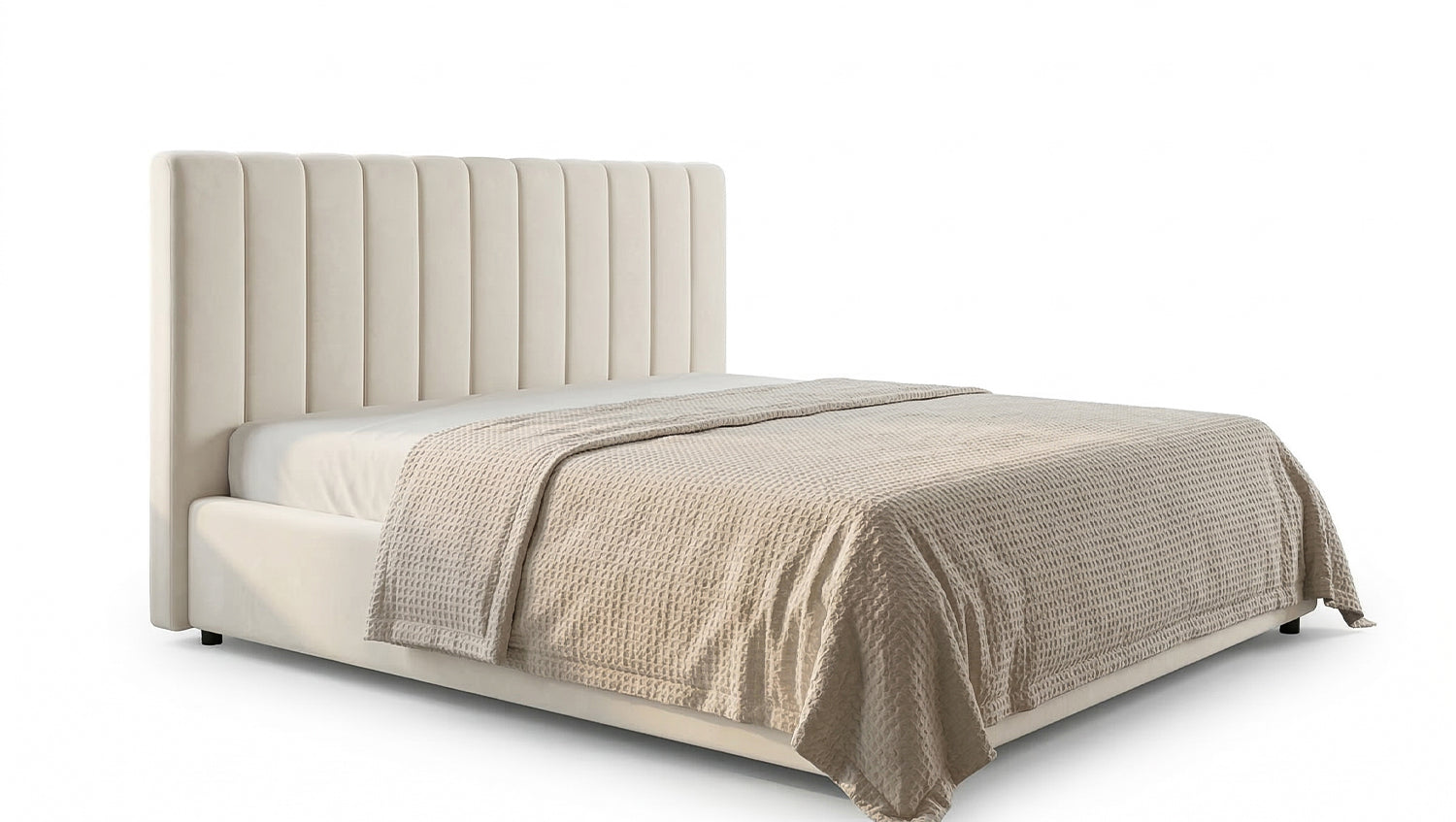 La cama tapizada CATTURA de KAWOLA convence por su carácter moderno y su elegante diseño, que confiere a cualquier dormitorio un ambiente especial. Se caracteriza por su generoso cabecero acolchado verticalmente, que se mantiene en un tono crema uniforme. Gracias a esta elección de color, el cabecero desprende una elegancia atemporal que confiere a la cama una presencia tranquila y, al mismo tiempo, expresiva. La funda de terciopelo de alta calidad subraya el carácter lujoso de la cama. La superficie aterciopelada y suave es agradable al tacto y, dependiendo de la incidencia de la luz, muestra un delicado y elegante irisado. Al mismo tiempo, el material es resistente y muy adecuado para el uso diario. Las líneas claras, en combinación con el suave acolchado, crean un equilibrio perfecto entre el diseño moderno y el confort hogareño. La profundidad de inserción para somieres de láminas se puede ajustar en tres alturas diferentes: 17,5 cm, 22,5 cm o 27,5 cm. De este modo, se puede adaptar individualmente a diferentes alturas de colchón y necesidades personales, y se consigue una altura de acceso cómoda. El cabecero, con un acolchado suave, ofrece además un cómodo respaldo, ideal para leer o descansar relajadamente. Con la cama tapizada CATTURA, usted se decide por una combinación de alta calidad entre diseño, funcionalidad y comodidad, que le da a su dormitorio un toque elegante y atemporal.