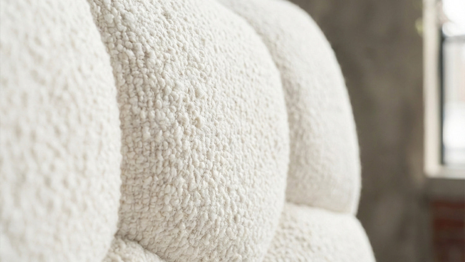 • Cabecero trasero completamente tapizado con tejido bouclé.