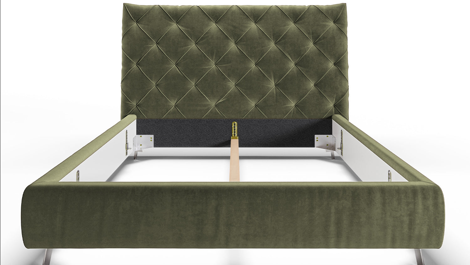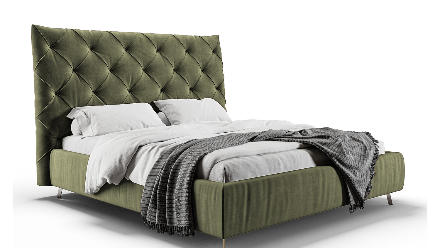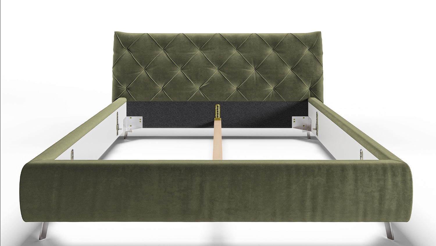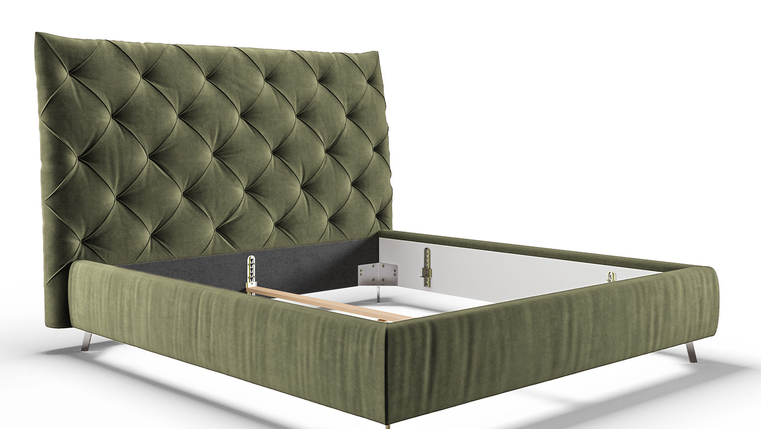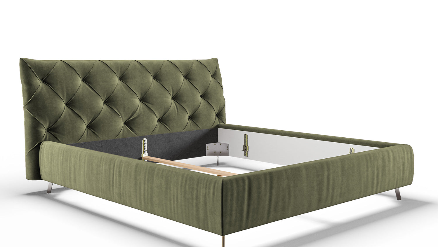 KAWOLA cama ANNY cama tapizada Terciopelo verde oliva