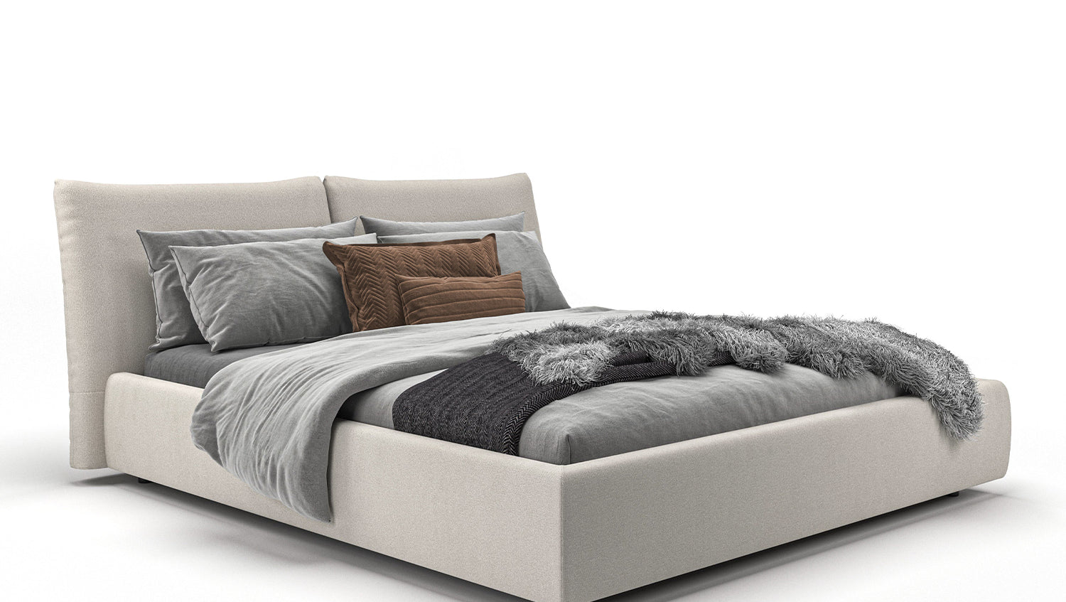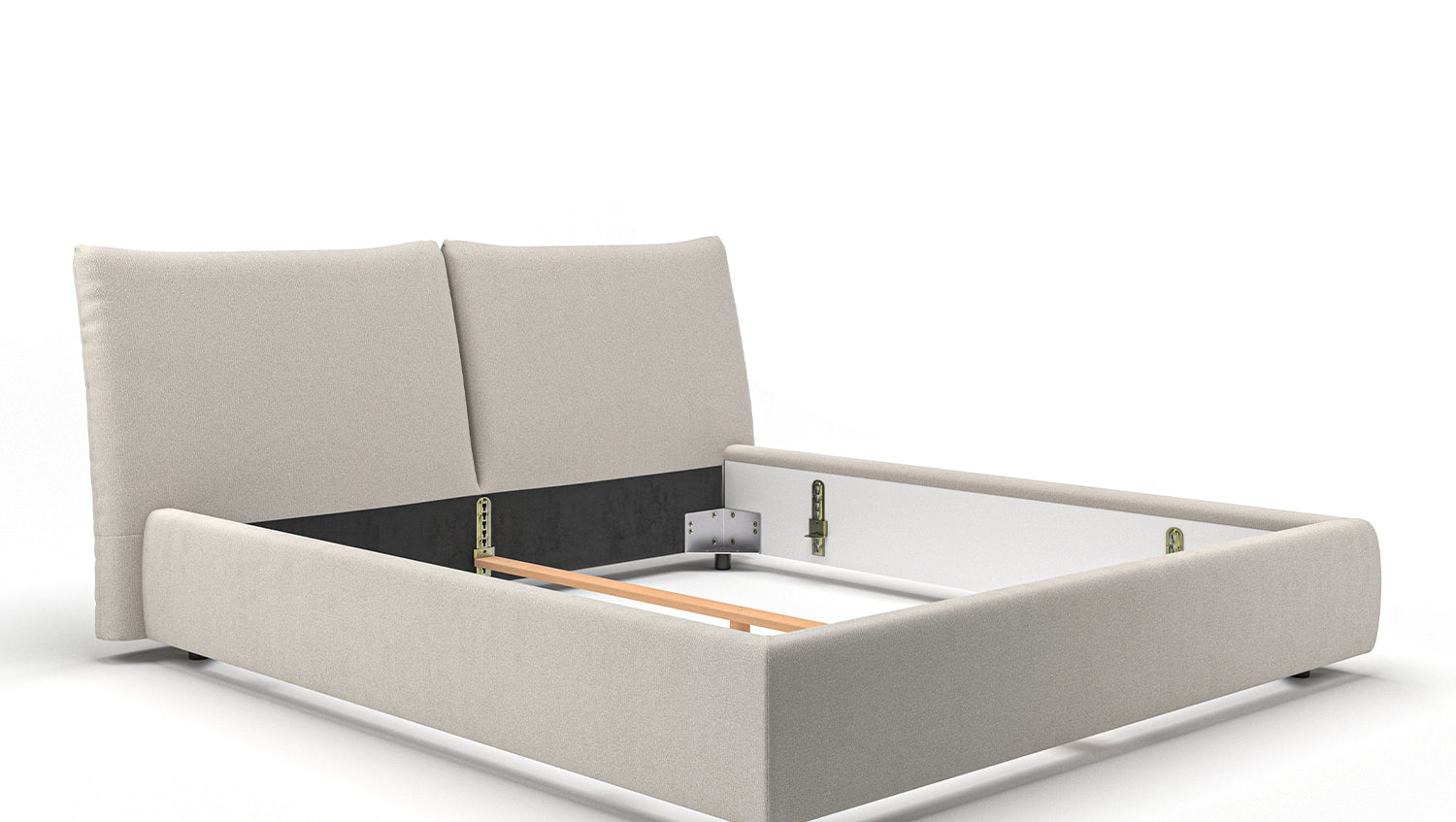 Cama KAWOLA HENRY cama tapizada de tela beige 200x200 cm