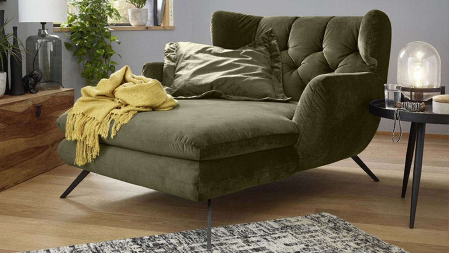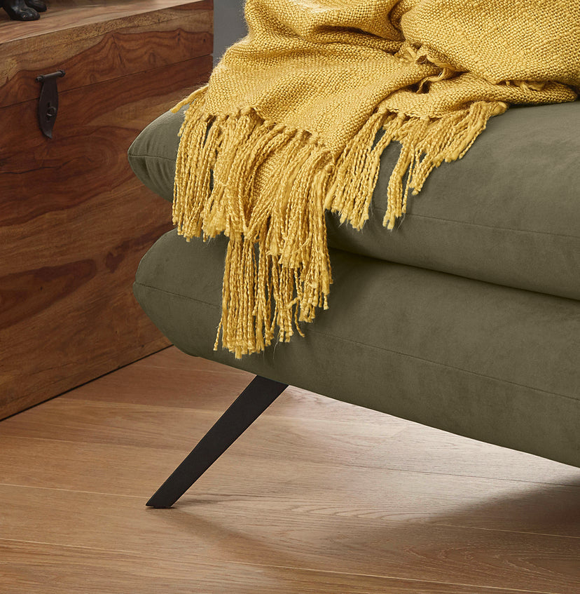 La tapicería del KAWOLA CHARME es de espuma PUR e impresiona por su suave y desenfadado confort de asiento. Por supuesto, el asiento largo está completamente tapizado en tela de olivo, de modo que este estupendo sofá reclinable también puede colocarse libremente en la habitación. Si no busca simplemente un sillón largo, sino un punto culminante muy especial, ¡el puf KAWOLA CHARME es la elección perfecta!