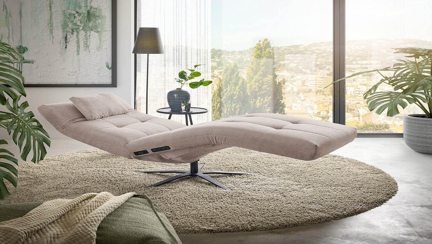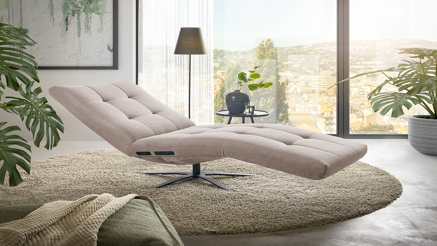 La tumbona LETICIA de KAWOLA combina un diseño elegante con el máximo confort. El tapizado de elegante Pana fina con acabado integral confiere a la Chaise longue un aspecto de alta calidad y una agradable sensación al sentarse. Destaca especialmente la base giratoria de 360 grados, que permite la máxima flexibilidad. Gracias a la función de reclinación integrada, puede personalizar LETICIA y relajarse por completo. Cuando la función está totalmente extendida, se alcanza la posición de báscula cardíaca, en la que el corazón y los pies se encuentran en la misma posición. Esta posición optimiza la circulación sanguínea, alivia la presión sobre las piernas y es, por tanto, perfecta para relajarse. Ya sea para leer, ver la televisión o simplemente para desconectar, el sillón reclinable LETICIA es la elección perfecta para los amantes del estilo. Tenga en cuenta que el reposapiés y el respaldo no pueden utilizarse como asiento. El límite de carga para el reposapiés y el respaldo es de 30 kg.