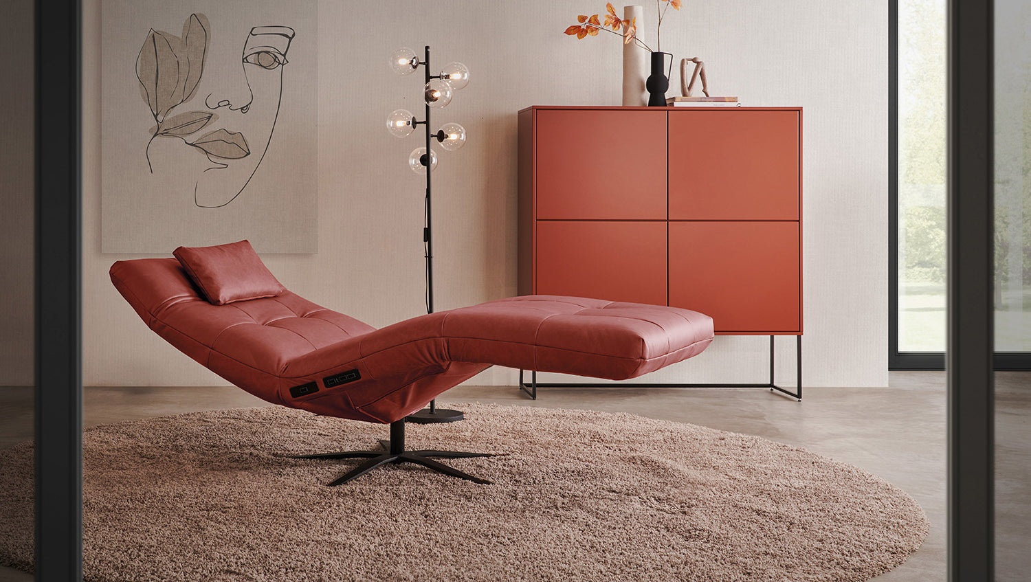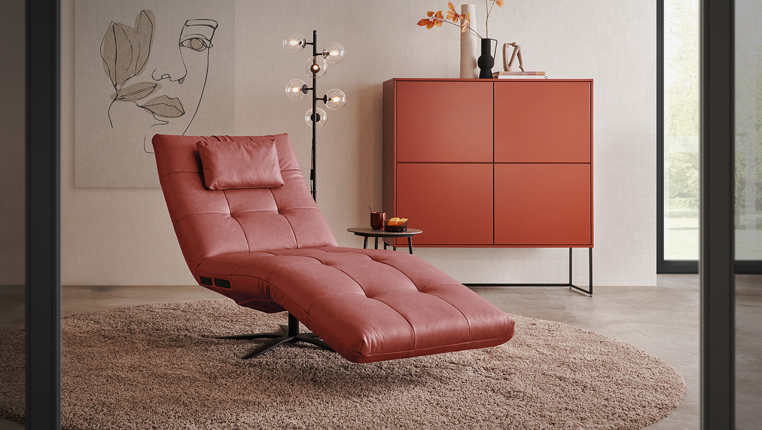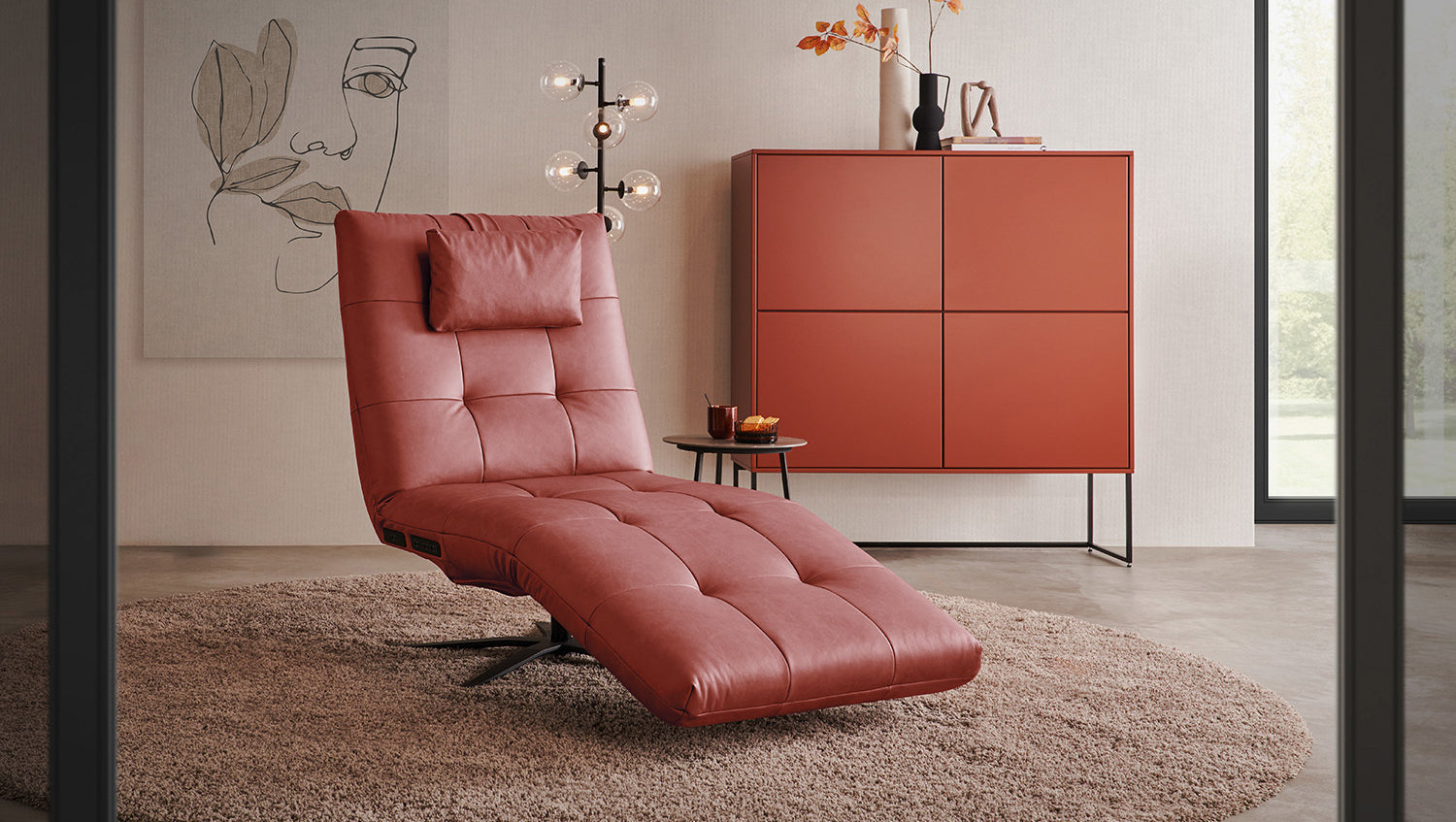 La tumbona LETICIA de KAWOLA combina un diseño elegante con el máximo confort. La elegante funda de cuero pigmentado con acabado integral confiere a la Chaise longue un aspecto de alta calidad y una agradable experiencia al sentarse. Las características naturales (por ejemplo, cicatrices, picaduras de insectos) y las variaciones estructurales y de color son inevitables y típicas del producto. Destaca especialmente la base giratoria de 360 grados, que permite la máxima flexibilidad. Gracias a la función de reclinación integrada, puede personalizar LETICIA y relajarse por completo. Cuando la función está totalmente extendida, se alcanza la posición de báscula cardíaca, en la que el corazón y los pies se encuentran en la misma posición. Esta posición optimiza la circulación sanguínea, alivia la presión sobre las piernas y es, por tanto, perfecta para relajarse. Ya sea para leer, ver la televisión o simplemente para desconectar, el sillón reclinable LETICIA es la elección perfecta para los amantes del estilo. Tenga en cuenta que el reposapiés y el respaldo no pueden utilizarse como asiento. El límite de carga para el reposapiés y el respaldo es de 30 kg.