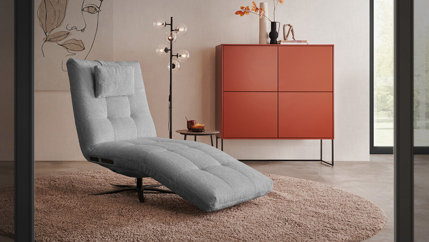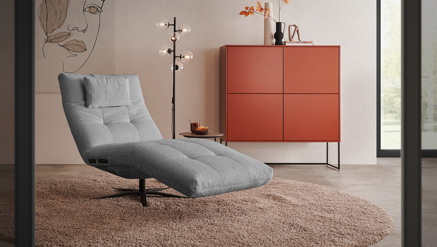 La tumbona LETICIA de KAWOLA combina un diseño elegante con el máximo confort. La elegante funda de tela con acabado integral confiere a la Chaise longue un aspecto de alta calidad y una agradable experiencia de asiento. Destaca especialmente la base giratoria de 360 grados, que permite la máxima flexibilidad. Gracias a la función de reclinación integrada, puede personalizar LETICIA y relajarse por completo. Cuando la función está totalmente extendida, se alcanza la posición de báscula cardíaca, en la que el corazón y los pies se encuentran en la misma posición. Esta posición optimiza la circulación sanguínea, alivia la presión sobre las piernas y es, por tanto, perfecta para relajarse. Ya sea para leer, ver la televisión o simplemente para desconectar, el sillón reclinable LETICIA es la elección perfecta para los amantes del estilo. Tenga en cuenta que el reposapiés y el respaldo no pueden utilizarse como asiento. El límite de carga para el reposapiés y el respaldo es de 30 kg.