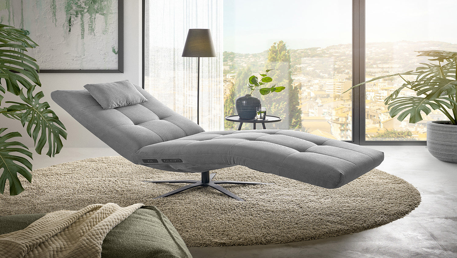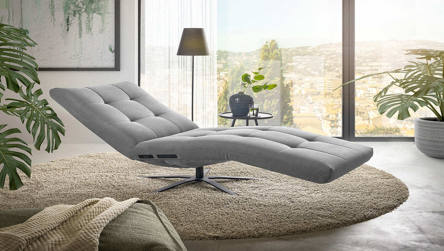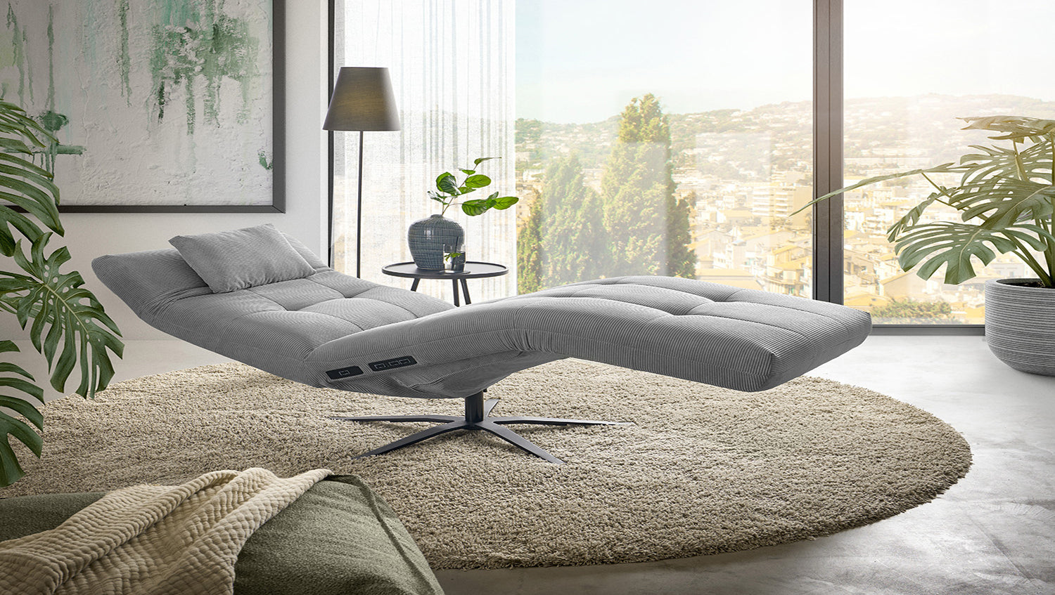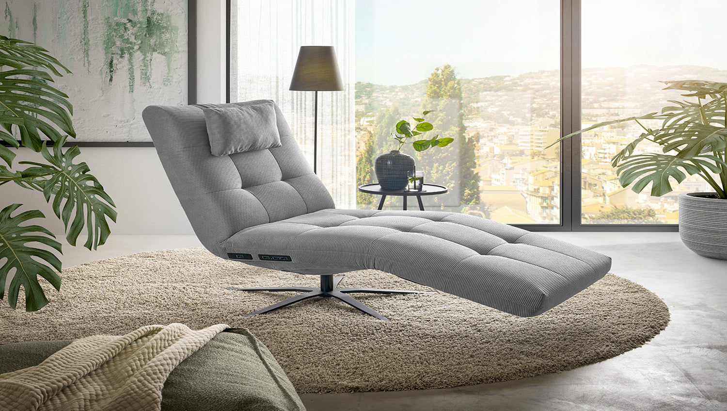 La tumbona LETICIA de KAWOLA combina un diseño elegante con el máximo confort. El tapizado de elegante Pana fina con acabado integral confiere a la Chaise longue un aspecto de alta calidad y una agradable sensación al sentarse. Destaca especialmente la base giratoria de 360 grados, que permite la máxima flexibilidad. Gracias a la función de reclinación integrada, puede personalizar LETICIA y relajarse por completo. Cuando la función está totalmente extendida, se alcanza la posición de báscula cardíaca, en la que el corazón y los pies se encuentran en la misma posición. Esta posición optimiza la circulación sanguínea, alivia la presión sobre las piernas y es, por tanto, perfecta para relajarse. Ya sea para leer, ver la televisión o simplemente para desconectar, el sillón reclinable LETICIA es la elección perfecta para los amantes del estilo. Tenga en cuenta que el reposapiés y el respaldo no pueden utilizarse como asiento. El límite de carga para el reposapiés y el respaldo es de 30 kg.