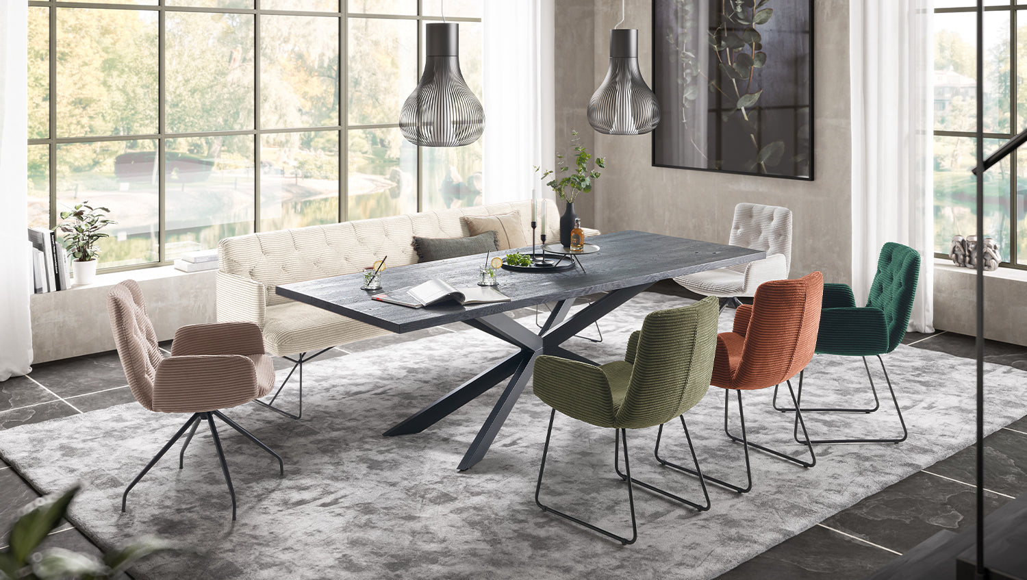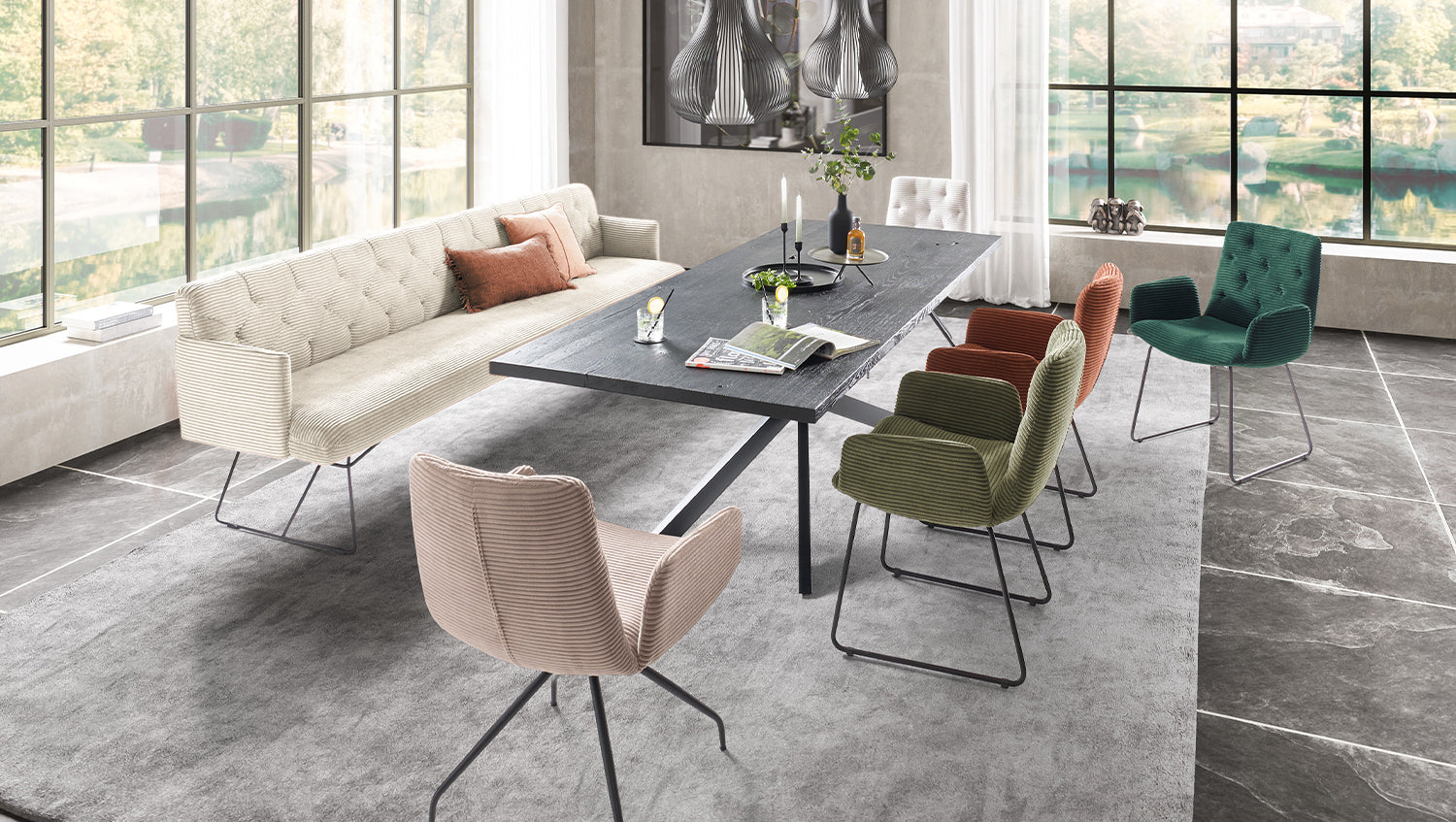El banco de comedor KAWOLA CHARME aporta un aire vintage a cualquier habitación. Gracias a su diseño minimalista, el cómodo Banco tapizado se adapta a cualquier hogar e invita a pasar las tardes jugando con los amigos o la familia. El banco se caracteriza por su tapizado desenfadado y el elevado confort de asiento que conlleva. La estructura desenfadada del asiento es típica del modelo y el diseño ondulado acentúa el factor acogedor del banco. El acogedor tapizado se acentúa aún más con la suave funda de tela de pana de moda, que hace que la sensación del banco sea acogedora y cómoda. Como el banco de comedor CHARME está revestido totalmente de tela, también se puede colocar en cualquier lugar de la habitación. El Banco tapizado encaja perfectamente en su hogar gracias a sus pies de alambre y a su elegante tapizado de pana. El banco tiene capacidad para cuatro personas que pueden disfrutar de una comodidad de asiento sin restricciones.