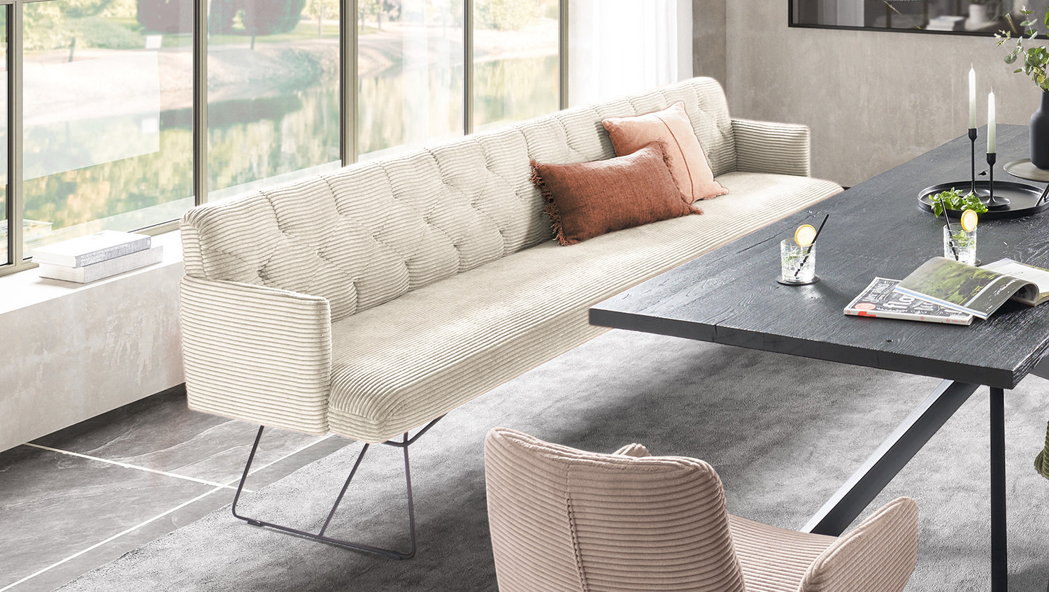Banco de comedor KAWOLA CHARME Pana crema blanco