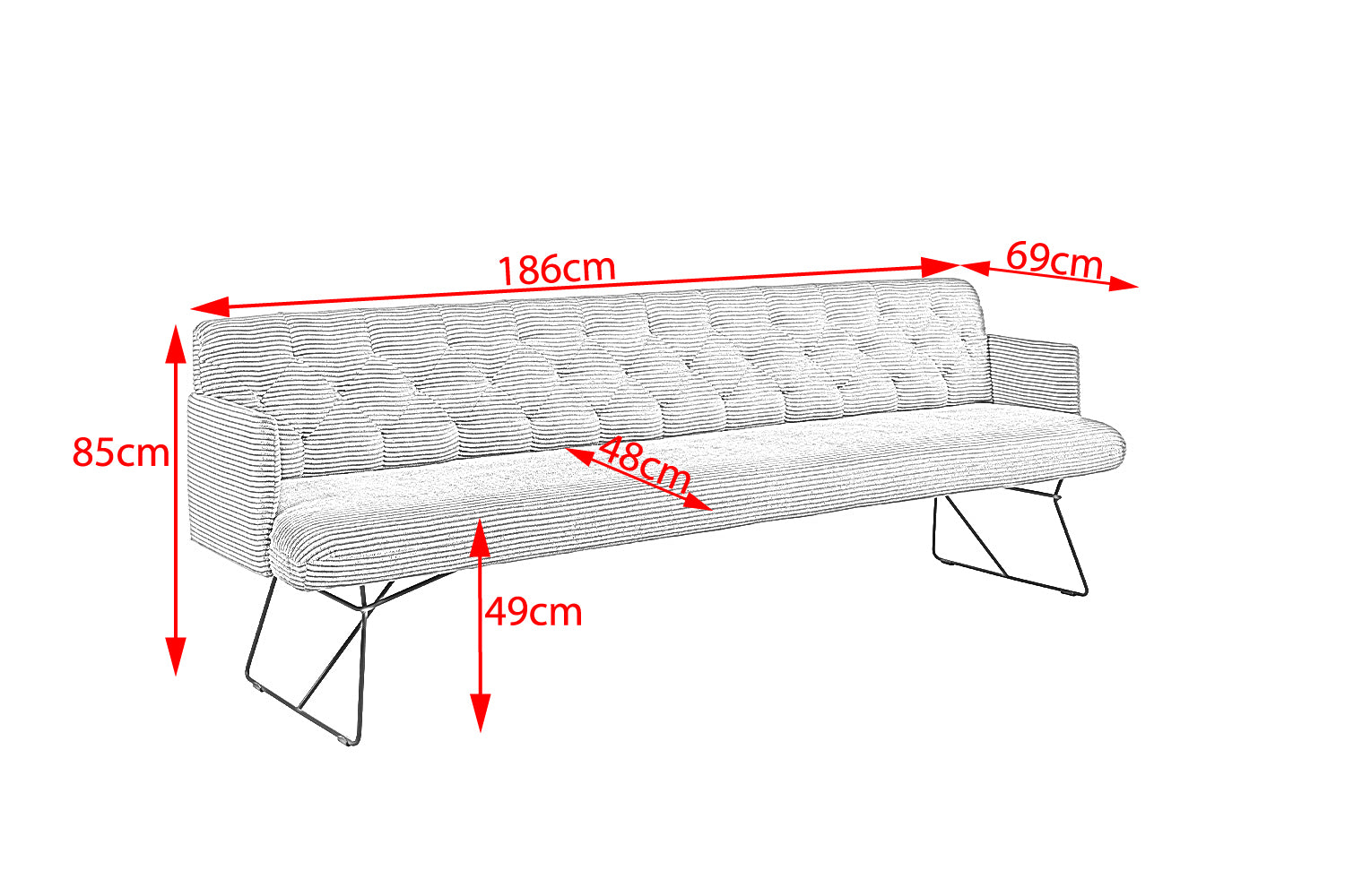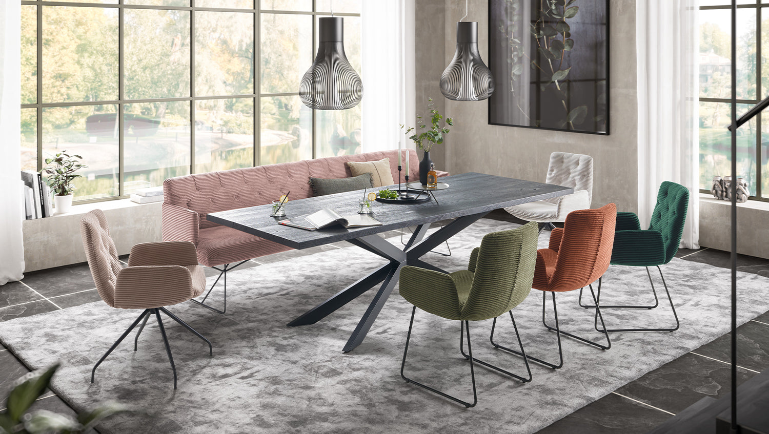 El banco de comedor KAWOLA CHARME aporta un aire vintage a cualquier habitación. Gracias a su diseño minimalista, el cómodo Banco tapizado se adapta a cualquier hogar e invita a pasar las tardes jugando con los amigos o la familia. El banco se caracteriza por su tapizado desenfadado y el elevado confort de asiento que conlleva. La estructura desenfadada del asiento es típica del modelo y el diseño ondulado acentúa el factor acogedor del banco. El acogedor tapizado se acentúa aún más con la suave funda de tela de pana de moda, que hace que la sensación del banco sea acogedora y cómoda. Como el banco de comedor CHARME está revestido totalmente de tela, también se puede colocar en cualquier lugar de la habitación. El Banco tapizado encaja perfectamente en su hogar gracias a sus pies de alambre y a su elegante tapizado de pana. El banco tiene capacidad para cuatro personas que pueden disfrutar de una comodidad de asiento sin restricciones.