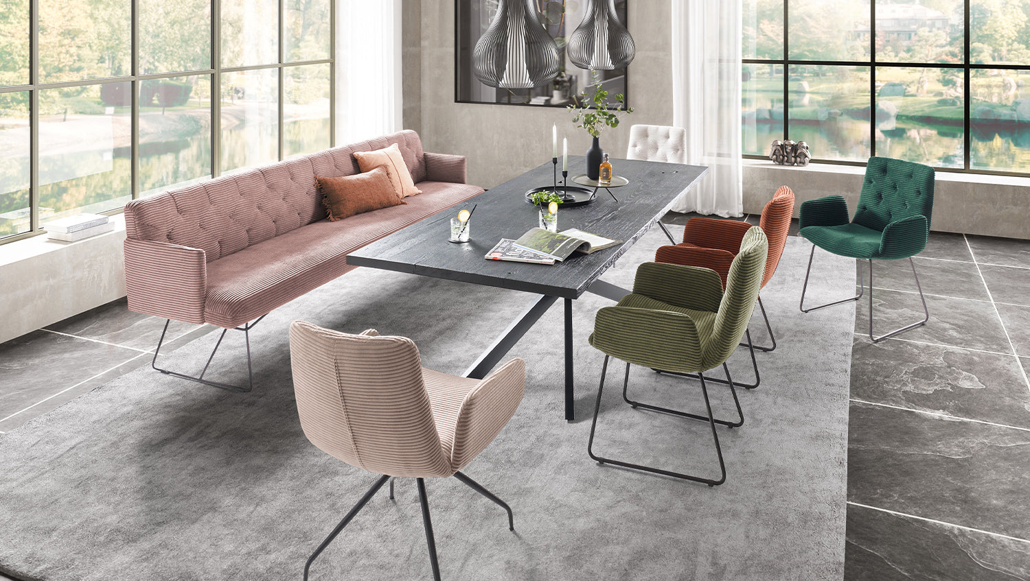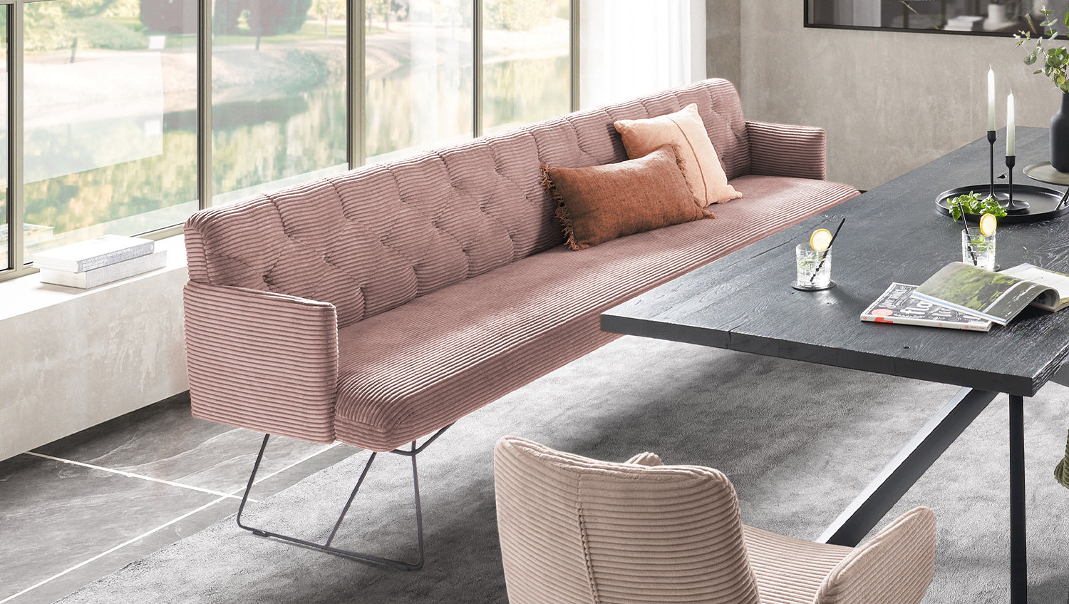 Banco de comedor KAWOLA CHARME Pana rosa