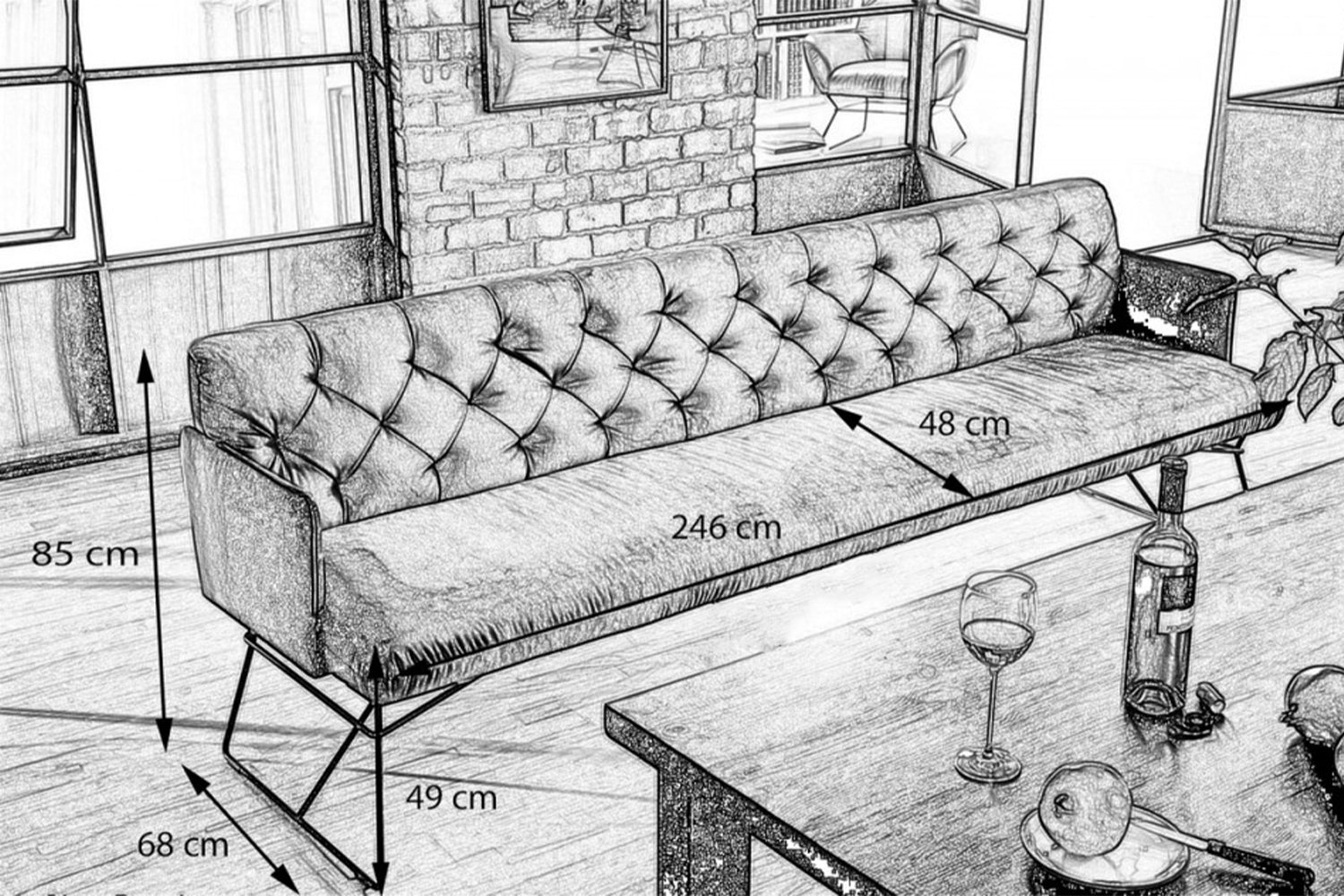 El banco de comedor KAWOLA CHARME en color esmeralda aterciopelado aporta un aire vintage a cualquier estancia. Gracias a su diseño minimalista, el cómodo Banco tapizado CHARME es adecuado para cualquier hogar e invita a pasar las tardes jugando con los amigos o la familia. El banco se caracteriza por su tapizado desenfadado y el elevado confort de asiento que conlleva. Además, el respaldo con su estilo Chesterfield aporta el deseado aspecto de la vieja escuela a su salón. La estructura desenfadada del asiento hace que la formación de ondas sea típica del modelo y deseada en términos de diseño, lo que acentúa el factor acogedor del banco. El acogedor tapizado se acentúa aún más con la funda de terciopelo aterciopelado, que hace que la sensación del banco sea acogedora y cómoda. Como CHARME está revestido en su totalidad de tela, el cómodo banco también puede colocarse en cualquier lugar de la habitación. Con sus patas de alambre y su tapizado aterciopelado, el Banco tapizado encaja perfectamente en su hogar. Con 166 cm de longitud, tiene espacio para que hasta cuatro personas disfruten de una comodidad de asiento ilimitada. Gracias a su aspecto, el banco de comedor es el complemento perfecto de las sillas de comedor ZAJA de nuestra gama.