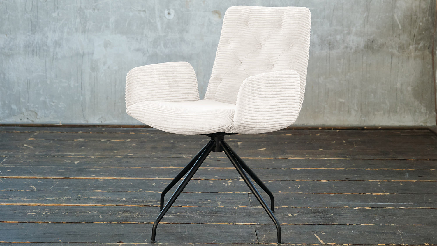 KAWOLA silla NEW CHARME silla giratoria silla de comedor pana blanco