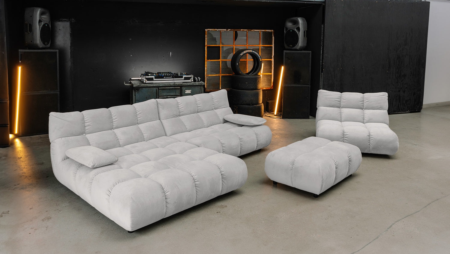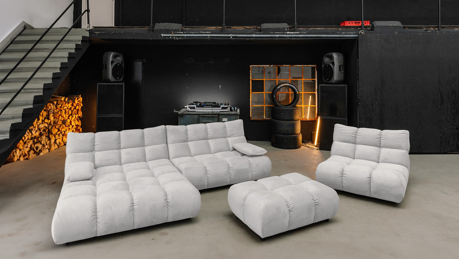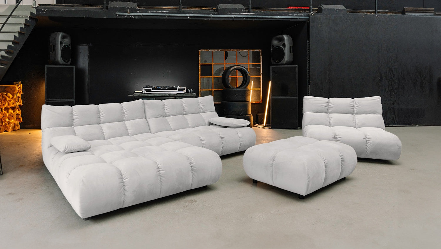 • FUNCIONES PRÁCTICAS - sofá para relajarse, Puf como complemento flexible, silla giratoria con función 360