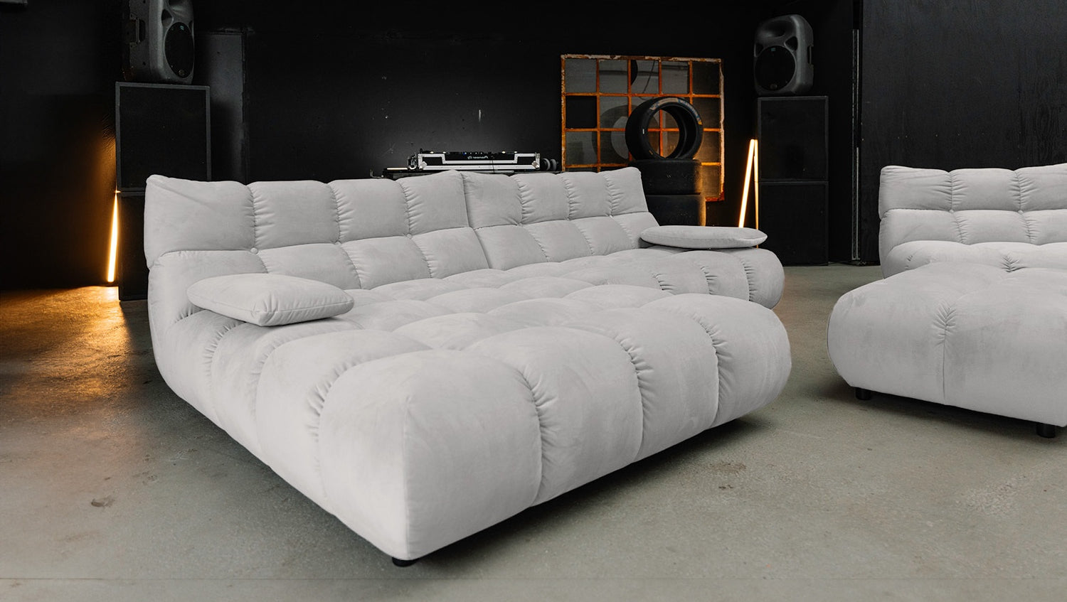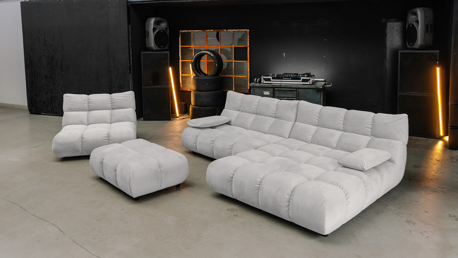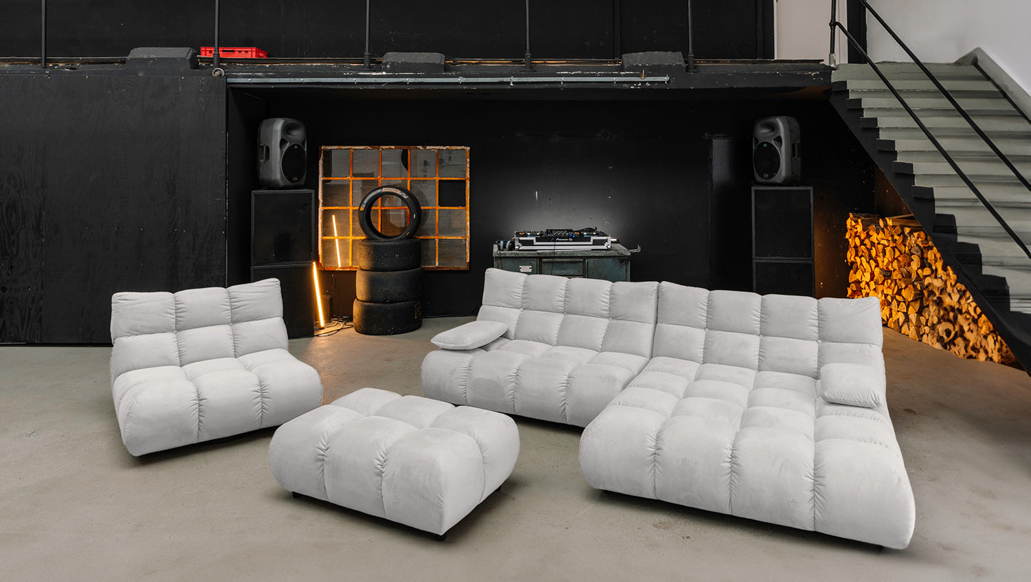 • FUNCIONES PRÁCTICAS - sofá para relajarse, Puf como complemento flexible, silla giratoria con función 360