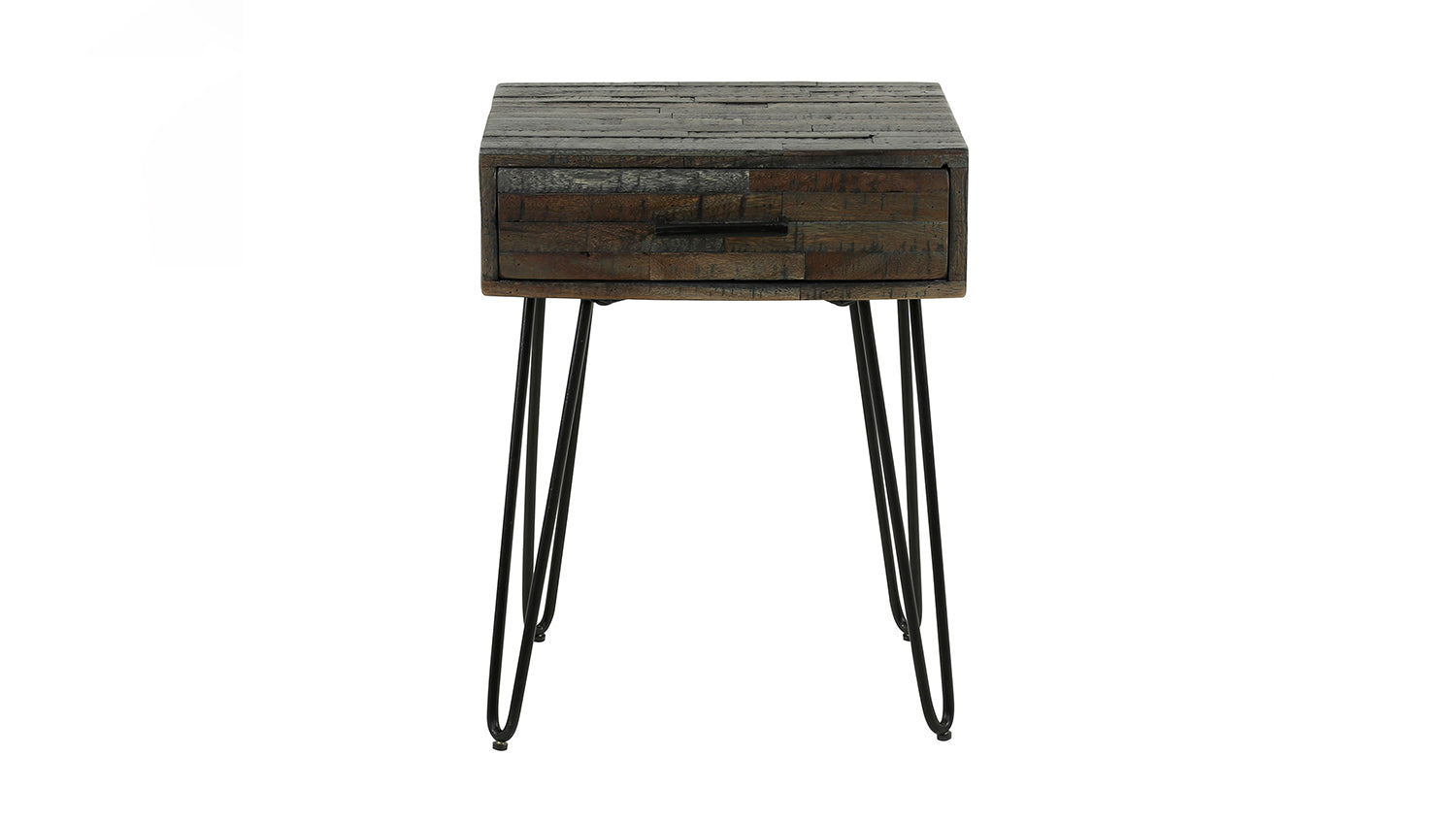 La mesilla de noche MESA de KAWOLA impresiona por su elegante diseño en madera de acacia lavada gris. La estructura de madera con incrustaciones de rayas le confiere un aspecto sofisticado que recuerda a la teca. Equipada con prácticos cajones y robustas patas de metal en acabado oscuro, este mueble combina funcionalidad y encanto moderno. La mesilla de noche MESA será el centro de todas las miradas en su dormitorio y se integrará perfectamente en cualquier interior gracias a su aspecto rústico.