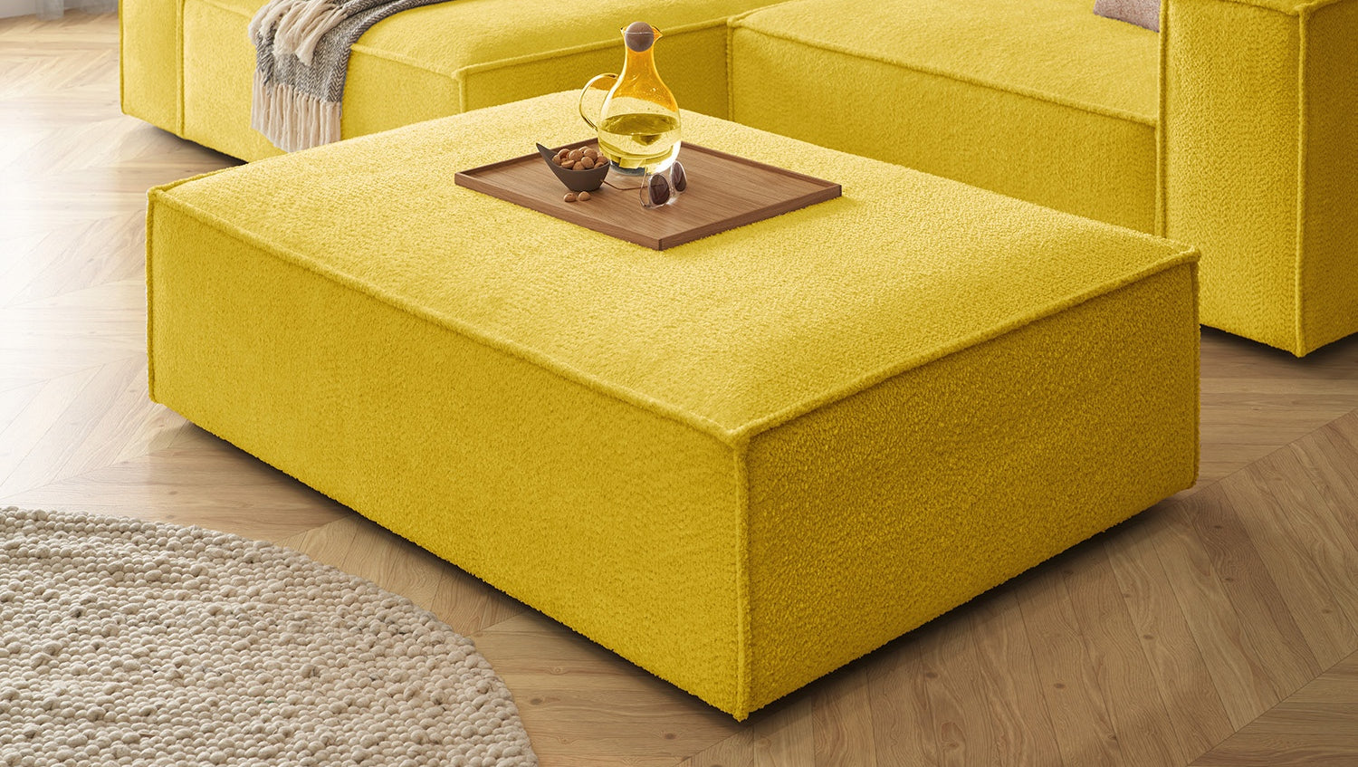 El banco CARMO de KAWOLA es el complemento perfecto para los conceptos de vida modernos. El elegante revestimiento de tela confiere al Puf un aspecto de alta calidad y una agradable experiencia de asiento. Proporciona un ambiente acogedor con estilo y pone acentos de moda en el salón. La generosa anchura de 145 cm y la profundidad de 100 cm ofrecen mucho espacio para sentarse, descansar o poner los pies en alto. Gracias al suave acolchado, el banco taburete proporciona un asiento especialmente cómodo, ideal para relajarse en el día a día. Ya sea como complemento del sofá o como accesorio independiente para el salón, el banco CARMO aúna comodidad, diseño y funcionalidad en un solo mueble. Un verdadero punto culminante para cualquier salón moderno.