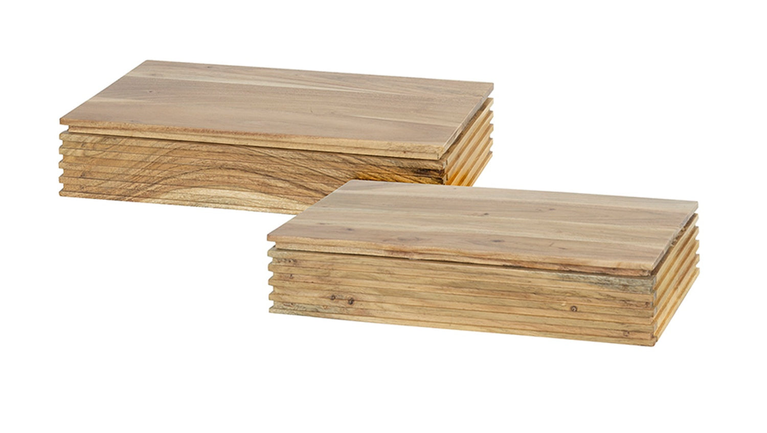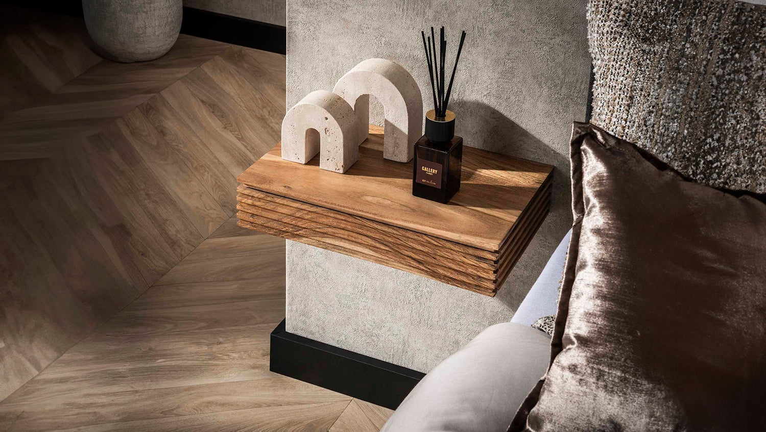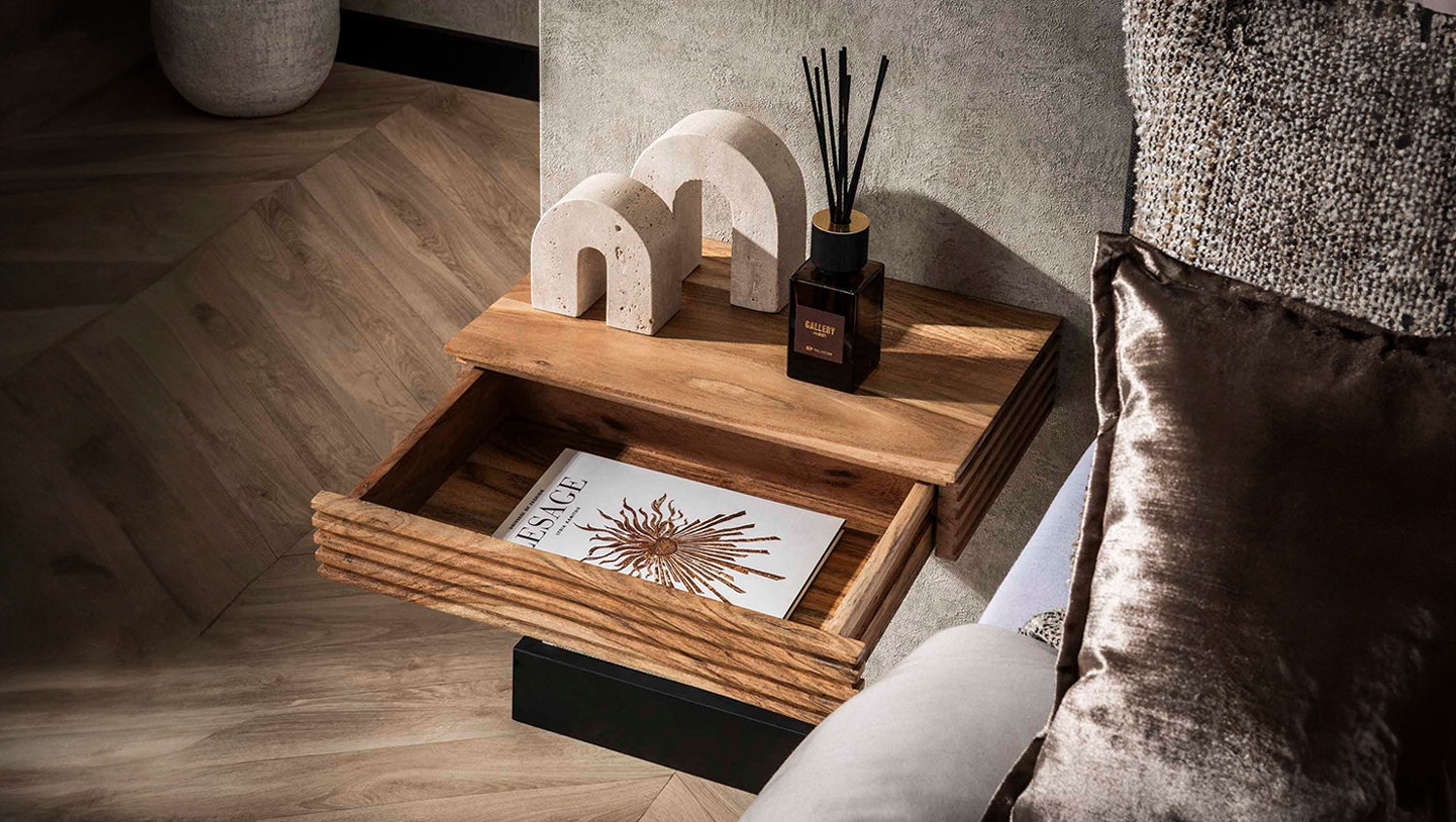 El juego de mesitas de noche KAWOLA FIRU XL, compuesto por dos mesitas, impresiona por su elegante diseño y su elaboración de alta calidad. Fabricado en madera de acacia maciza con un llamativo diseño ondulado y lacado mate transparente, este juego de mesitas de noche de pared aporta una elegancia natural a su dormitorio. El aspecto flotante se consigue mediante un sencillo montaje en la pared con sólo dos tornillos, ideal para conceptos de habitación modernos que ahorran espacio. Con unas dimensiones compactas de 40 x 25 x 8 cm, el conjunto es perfecto para guardar libros, teléfonos móviles o adornos. La elegante estructura de madera y el diseño minimalista hacen de la mesilla de noche de pared FIRU XL un elemento funcional en cualquier dormitorio. Ideal para habitaciones pequeñas, camas con somier o como alternativa elegante a la clásica mesilla de noche.