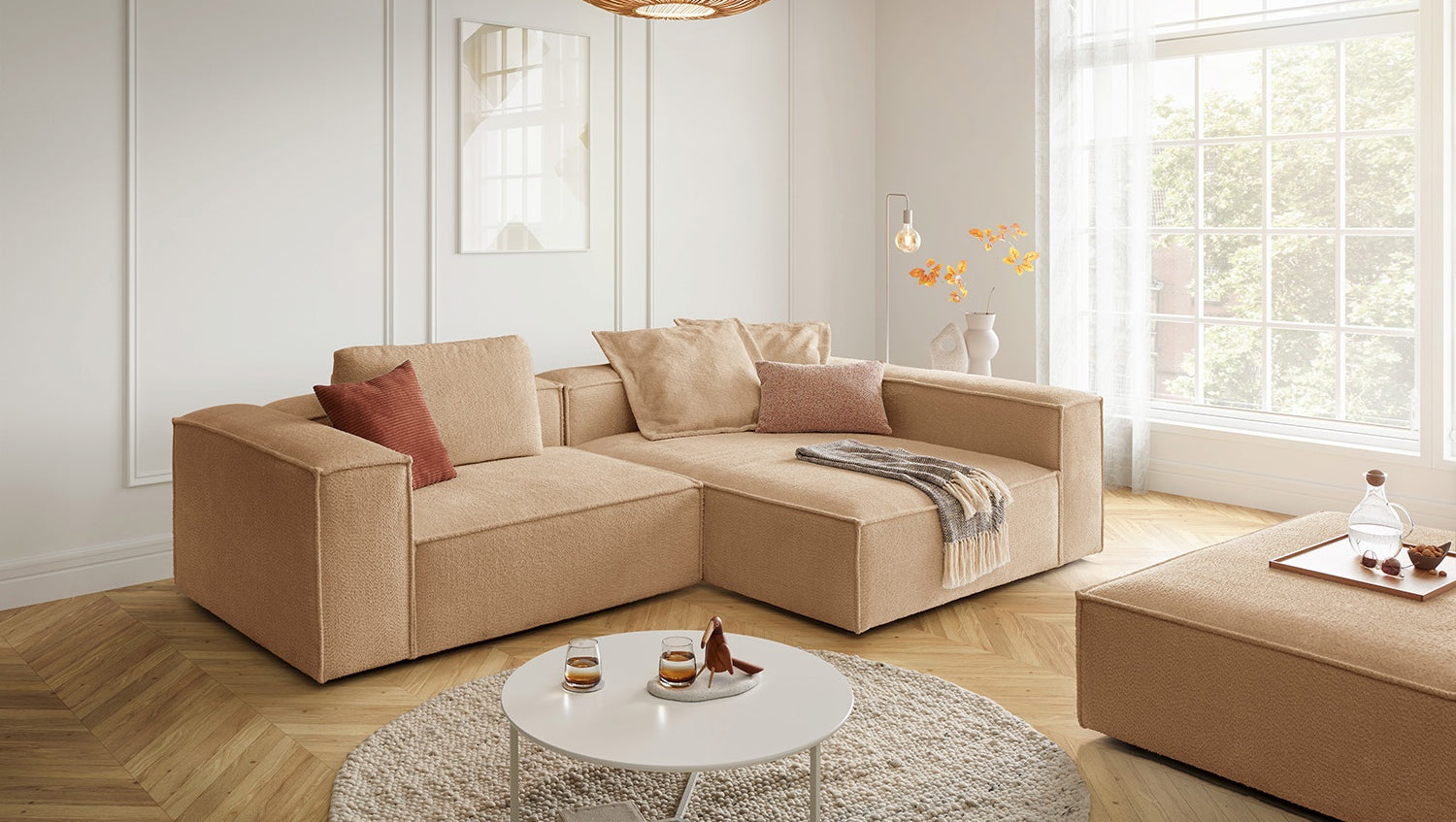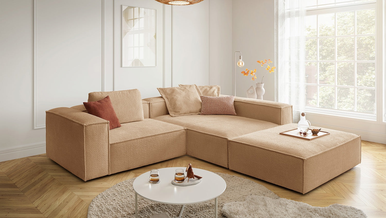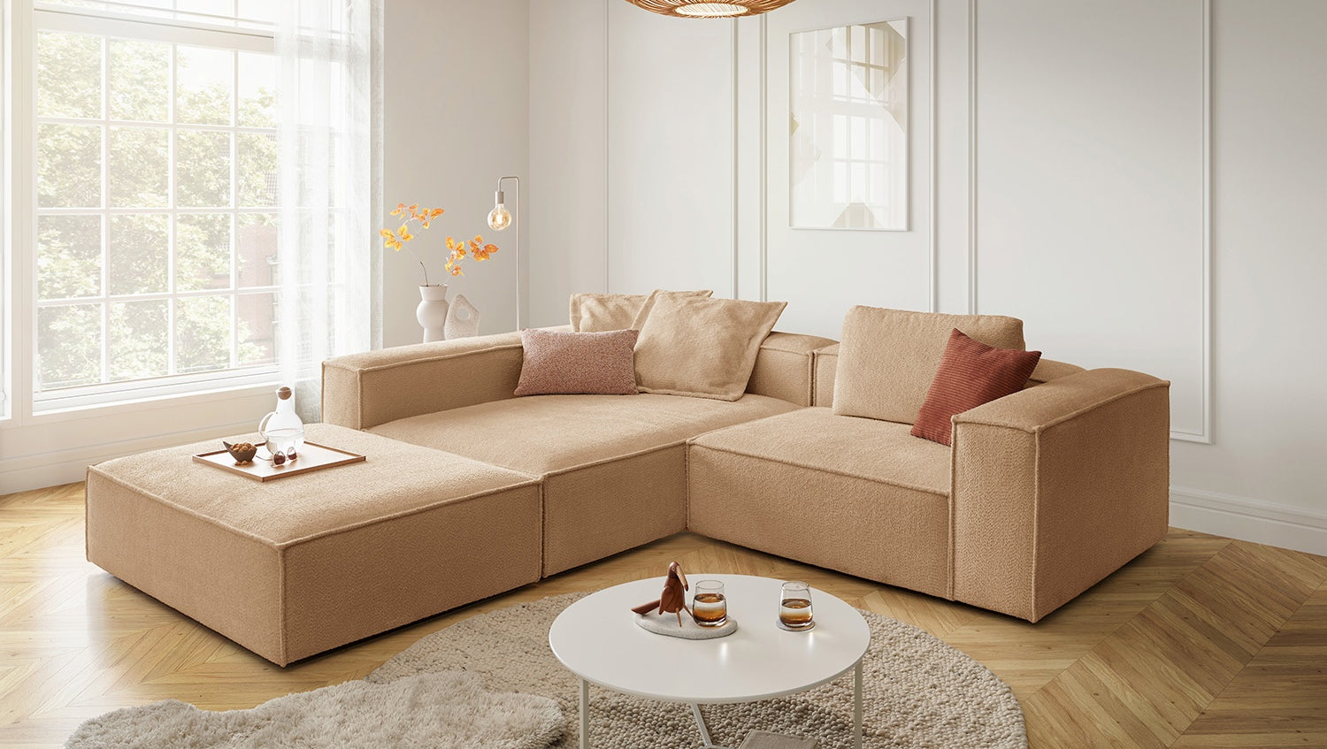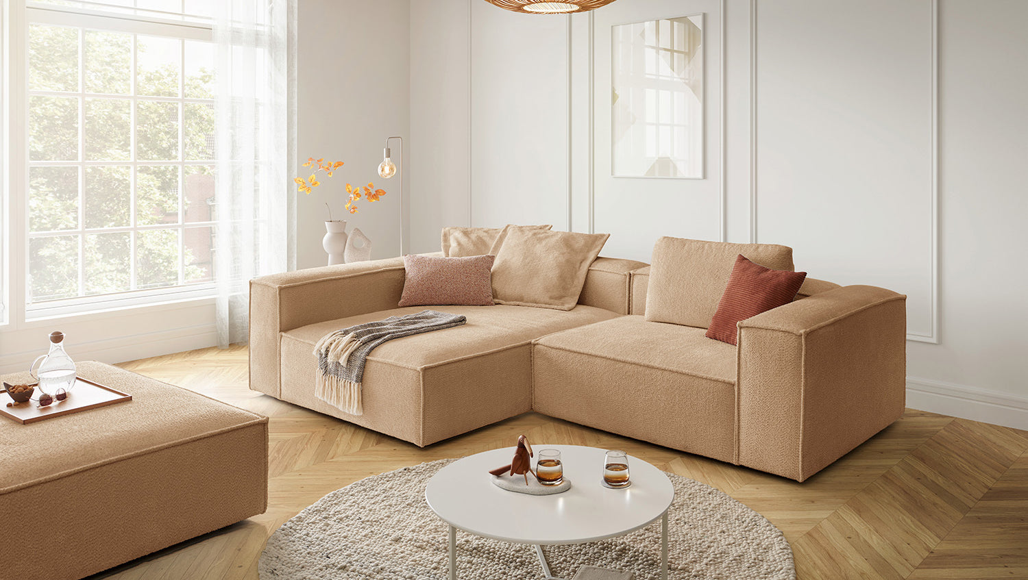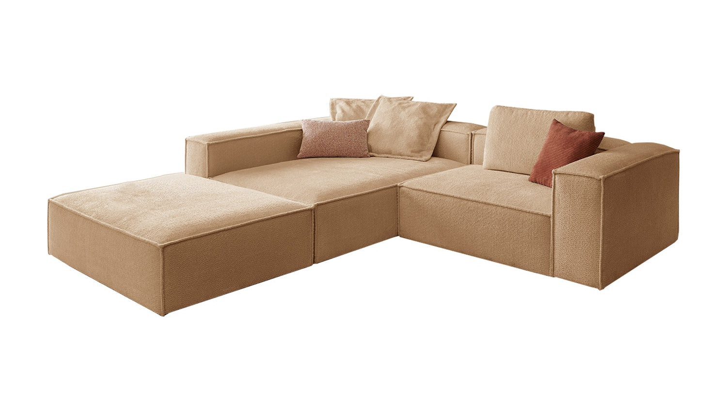 El sofá esquinero CARMO de KAWOLA impresiona por su moderno diseño y su máximo confort. El elegante revestimiento de tela con acabado integral confiere al sofá un aspecto de alta calidad y una sensación acogedora. Con una generosa anchura de 306 cm, CARMO ofrece mucho espacio para relajarse. La suave tapicería garantiza un asiento especialmente cómodo, ideal para pasar agradables veladas en casa. El tapizado integral permite una colocación flexible en la habitación: un verdadero punto de atracción incluso cuando está colocado de pie. Otro punto a favor: el tapizado tiene poco pilling, lo que hace que la superficie sea duradera y fácil de limpiar. Experimente un mueble de moda que combina a la perfección estilo, calidad y confort con el sofá CARMO de KAWOLA: un punto culminante para cualquier sala de estar.