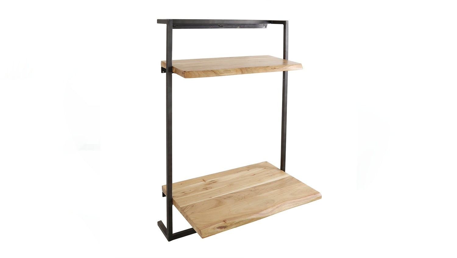 El escritorio AIDY de KAWOLA es una solución elegante para un interiorismo con estilo en un espacio reducido. La combinación de madera maciza de acacia, acabada con un lacado mate transparente, y un robusto armazón de metal le confiere un aspecto moderno a la par que cálido. Su punto fuerte es el ahorro de espacio en el montaje mural: AIDY se fija de forma segura mediante un listón estable con cuatro orificios para tornillos, mientras que los orificios para tornillos adicionales situados bajo las tablas de madera garantizan la máxima estabilidad. Con unas medidas de 65 cm de ancho y 100 cm de alto, ofrece suficiente espacio de trabajo o almacenamiento en dos niveles. Ideal para habitaciones pequeñas, AIDY crea un oasis flotante de trabajo o estilismo y también puede utilizarse con estilo como tocador compacto.