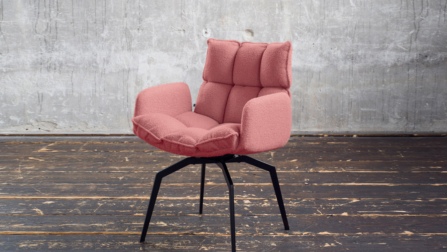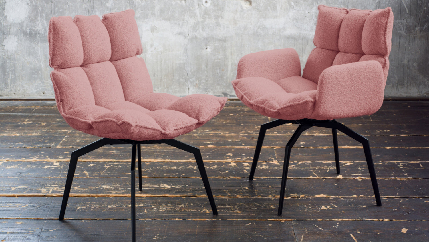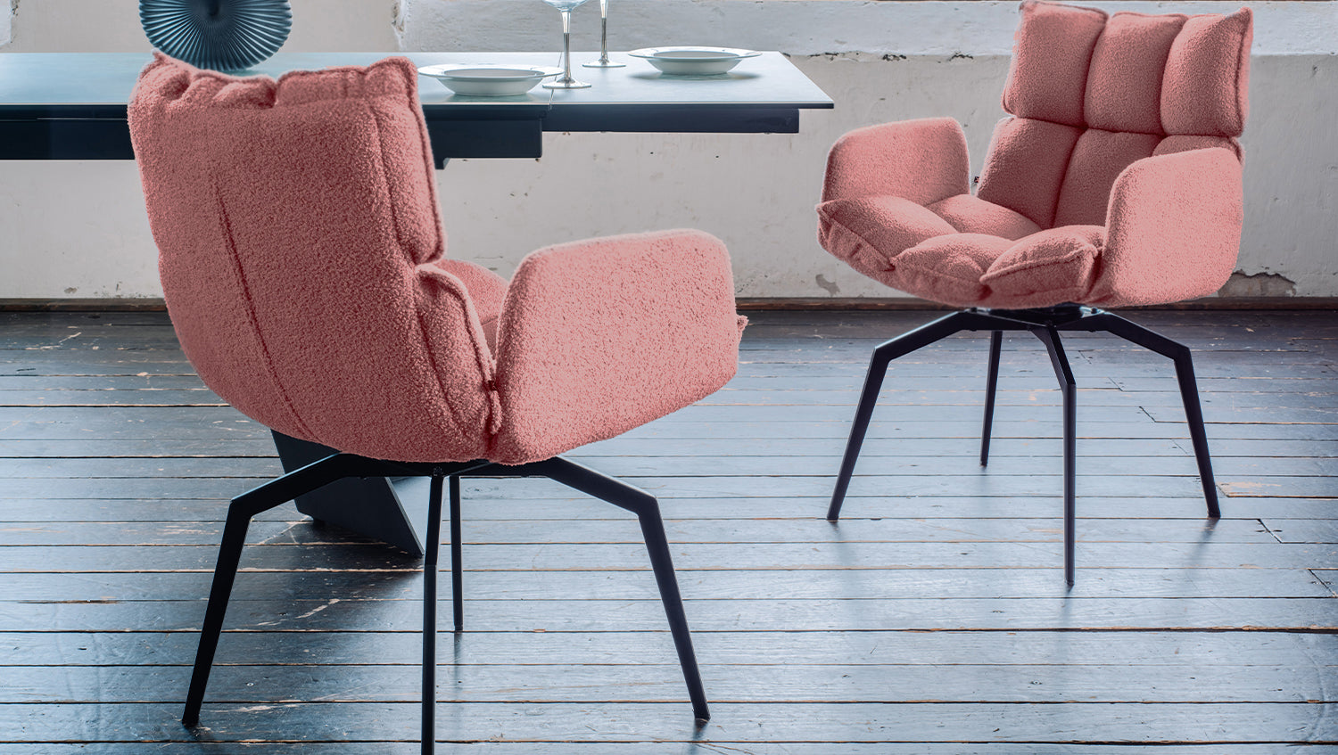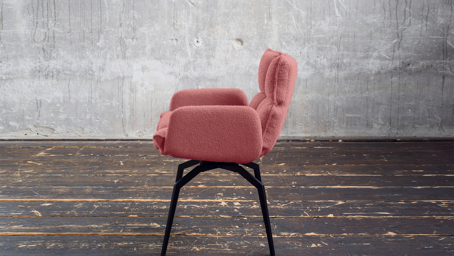 KAWOLA silla de comedor BARO silla giratoria con reposabrazos tela rosa