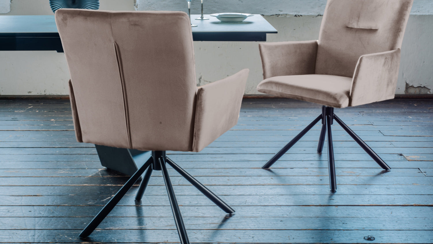 La silla de comedor KAWOLA KYRA combina un lujoso confort con un diseño moderno y es el complemento perfecto para cualquier comedor con estilo. Con una anchura de 64 cm, una profundidad de 61 cm y una altura de 88 cm, la silla tapizada en elegante terciopelo ofrece mucho espacio para sentarse cómodamente. Gracias a la altura del asiento de 49 cm, la profundidad del asiento de 46 cm y la anchura del asiento de 49 cm, la silla es ideal para largas y relajantes veladas. Lo más destacado es el bastidor giratorio 360° con función de retorno automático, que vuelve automáticamente a su posición original después de cada giro: ideal para un uso flexible y práctico en la Mesa de comedor. Las robustas patas de hierro negro con recubrimiento en polvo garantizan estabilidad y un aspecto moderno. Los reposabrazos integrados hacen que la silla de comedor sea aún más cómoda y elegante. La silla KYRA es la elección ideal para quien desee combinar comodidad y funcionalidad con un toque de lujo.