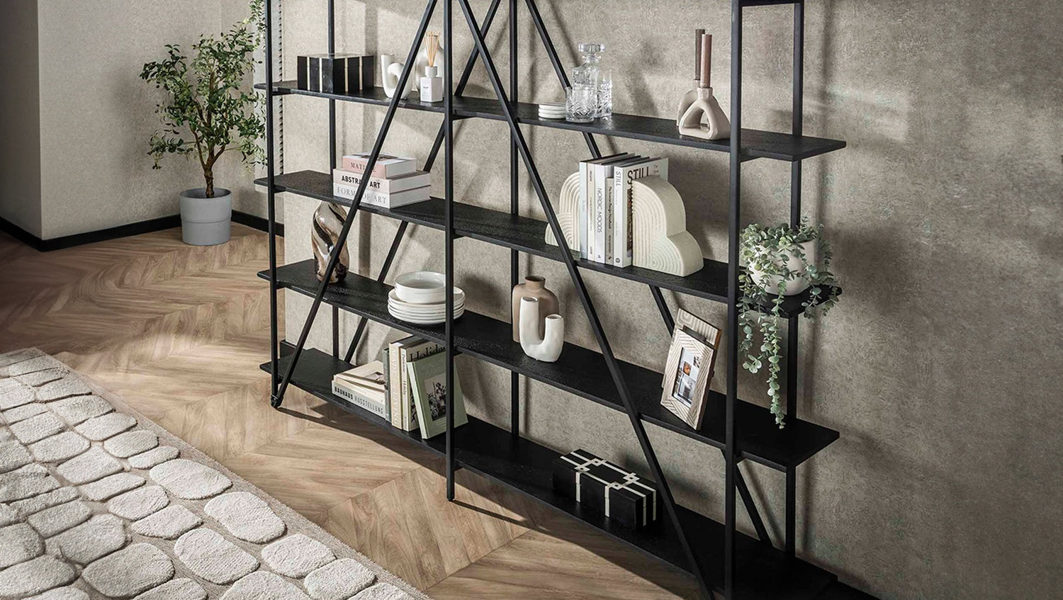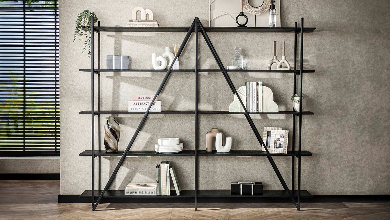 La estantería de pared KAWOLA PEARA 220 cm es una estantería de 5 niveles hecha de madera MDF con un revestimiento de metal líquido gris oscuro y un marco de metal gris oscuro a juego. Dispone de cinco espaciosos compartimentos para libros, adornos u otros objetos. Como el mueble se entrega desmontado, puede enviarse en un paquete compacto.