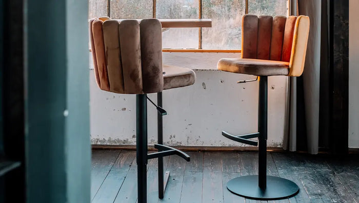 El taburete de bar JADA está disponible en tres opciones de tapizado de alta calidad: cuero genuino de alta calidad con textura natural y elegancia duradera, cuero sintético de fácil cuidado para un uso diario práctico y tela de terciopelo suave para una experiencia de asiento especialmente cómoda. Así, encontrará el estilo perfecto para cada necesidad y estilo de decoración.