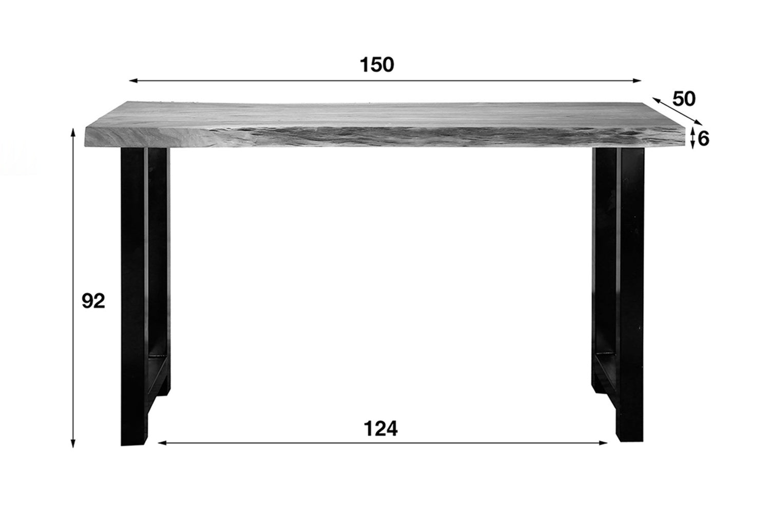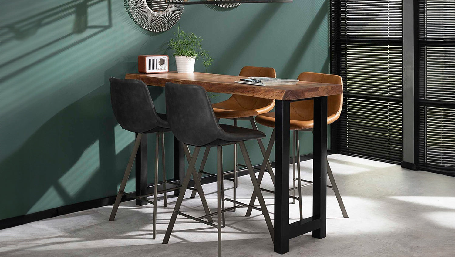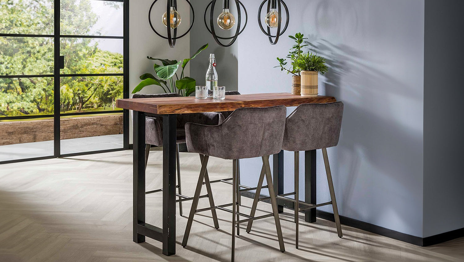 La mesa de bar BAMA de KAWOLA combina un diseño rústico con un aspecto industrial moderno. El tablero de 6 cm de grosor de madera maciza de acacia impresiona por su forma natural de tronco de árbol: cada pieza es única. La elegante estructura de metal con recubrimiento de polvo negro proporciona estabilidad y un elegante contraste con el cálido color de la madera. El barniz transparente mate protege la superficie de la humedad y realza las finas vetas de la madera. Con sus dimensiones de 150 x 50 x 92 cm (LxAxA), la mesa de bar es ideal para cocinas, comedores o conceptos de vida modernos. BAMA no sólo es un mueble práctico, sino que también atrae las miradas de los amantes de los materiales naturales y el diseño industrial. La mesa de bar puede combinarse perfectamente con taburetes de bar y es ideal para veladas acogedoras o para empezar el día con estilo.