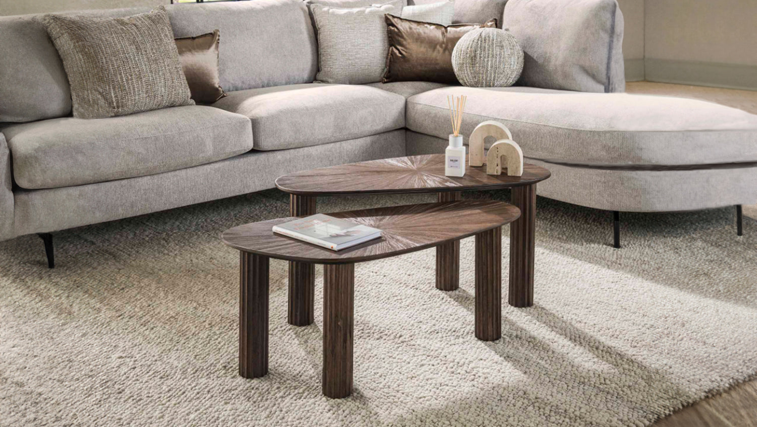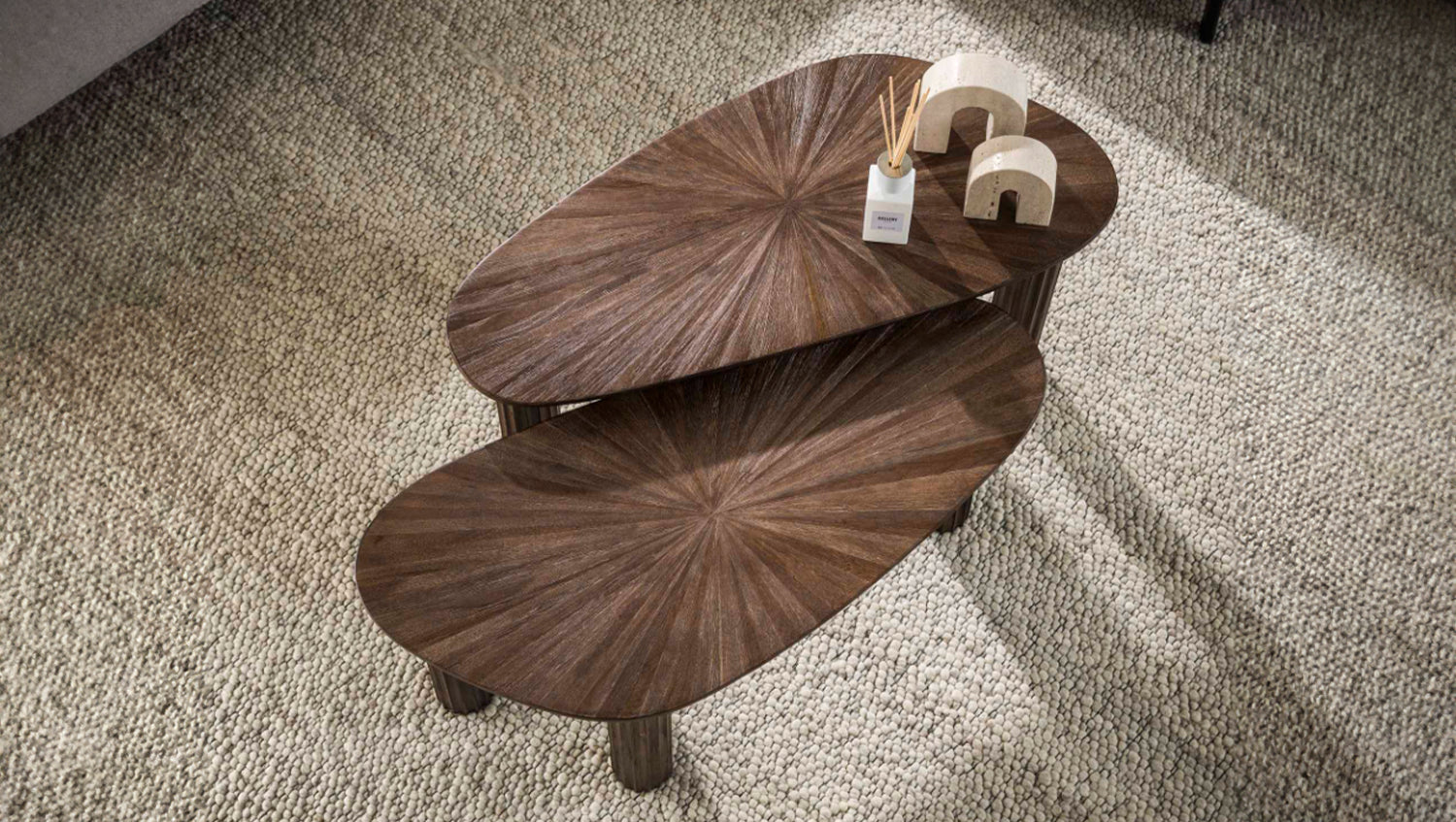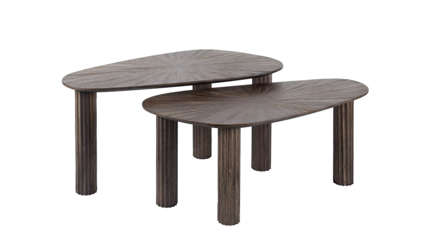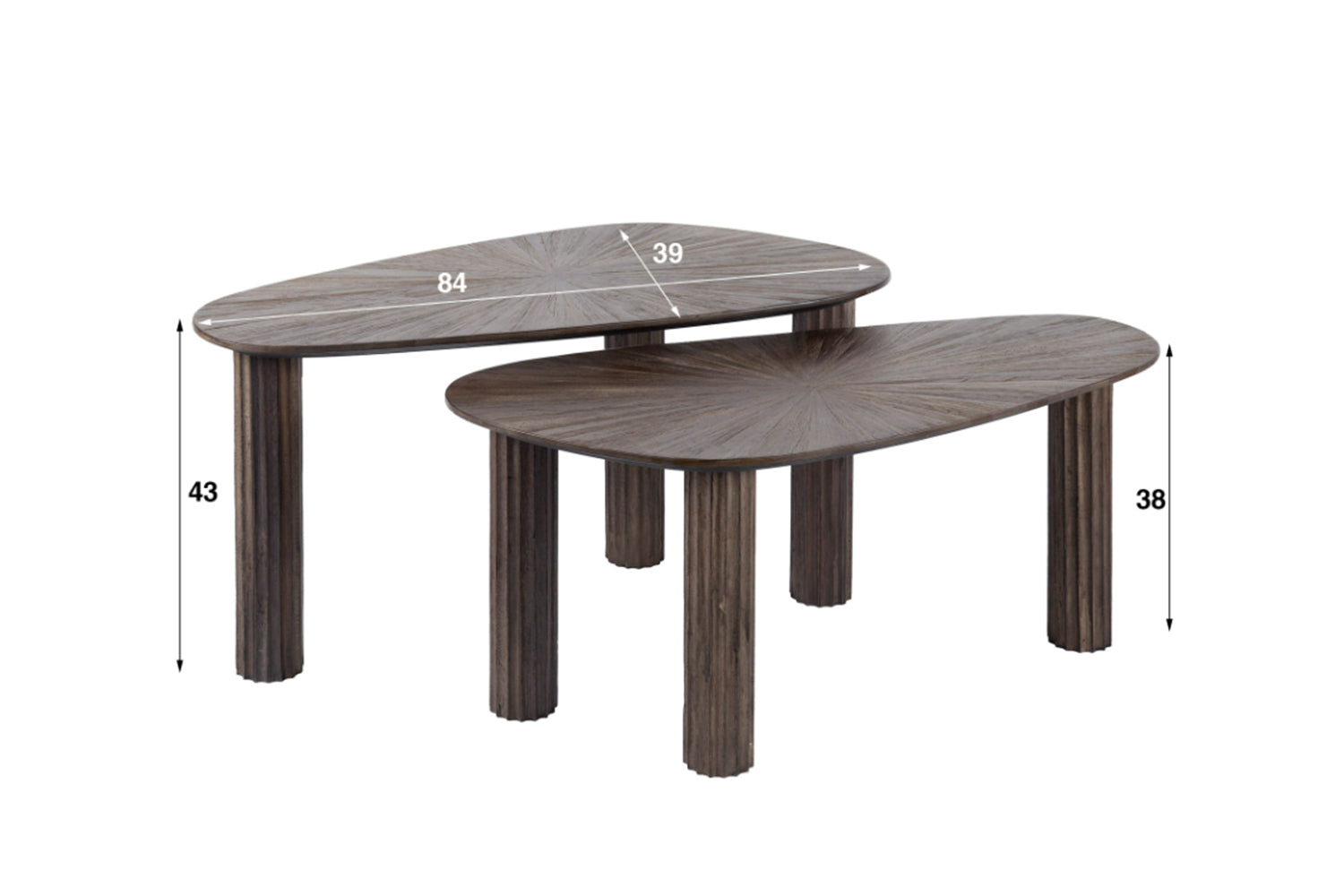 El juego de mesas de centro INKA de KAWOLA aúna naturaleza y diseño moderno en perfecto equilibrio. Las mesas están diseñadas con una forma orgánica y fabricadas en teca de alta calidad en un moderno color marrón oscuro. Esta combinación garantiza que estas mesas desprendan estilo y durabilidad. Las exclusivas patas onduladas y el elegante diseño del tablero crean un aspecto alegre y sofisticado a la vez. El conjunto consta de dos mesas de 84 x 39 cm cada una. La primera mesa tiene una altura de 43 cm y la segunda de 38 cm. Ya sea en el salón, en la sala de estar o como un elegante mueble de almacenamiento, el juego de mesa de centro INKA encaja en cualquier hogar y es toda una declaración de diseño.