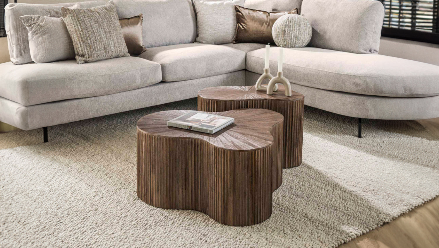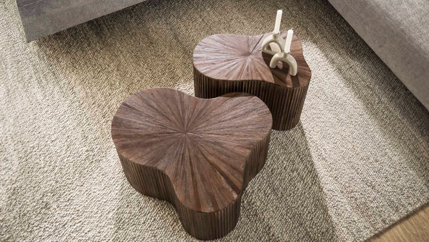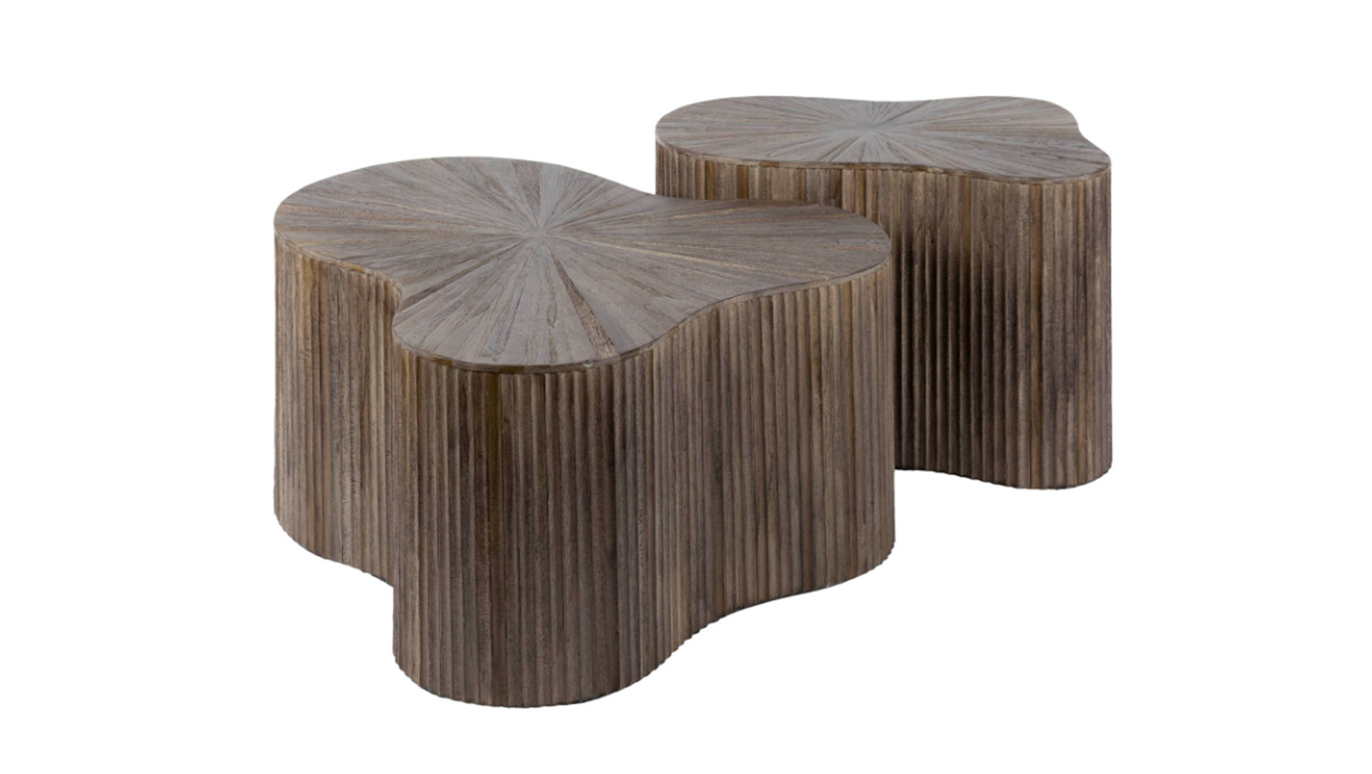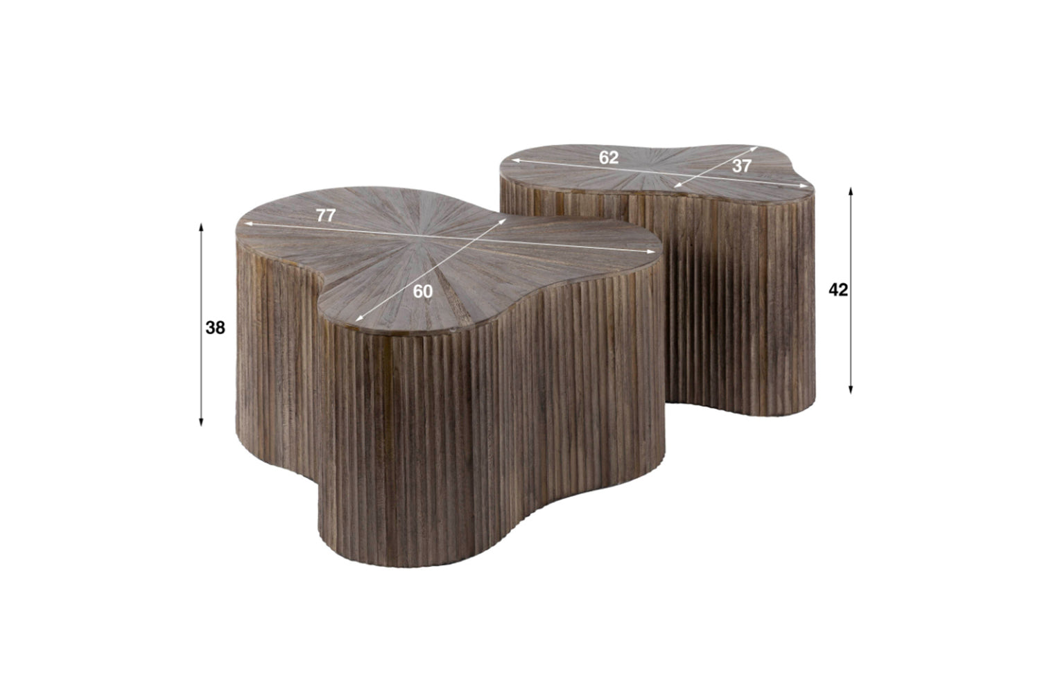 El juego de mesas de centro INKA de KAWOLA aúna naturaleza y diseño moderno en perfecto equilibrio. Las mesas están diseñadas con una forma orgánica y fabricadas en teca de alta calidad en un moderno color marrón oscuro. Esta combinación garantiza que estas mesas desprendan estilo y durabilidad. Las exclusivas patas onduladas y el elegante diseño del tablero crean un aspecto alegre y sofisticado a la vez. El conjunto consta de dos mesas en forma de trébol. La mesa más grande tiene una superficie de 77 x 60 cm y una altura de 38 cm, la mesa más pequeña tiene una superficie de 62 x 37 cm y una altura de 42 cm. Ya sea en el salón, en la sala de estar o como elegante estantería, el juego de mesas de centro INKA encaja en cualquier hogar y es toda una declaración de diseño.