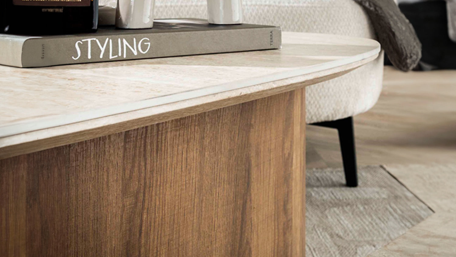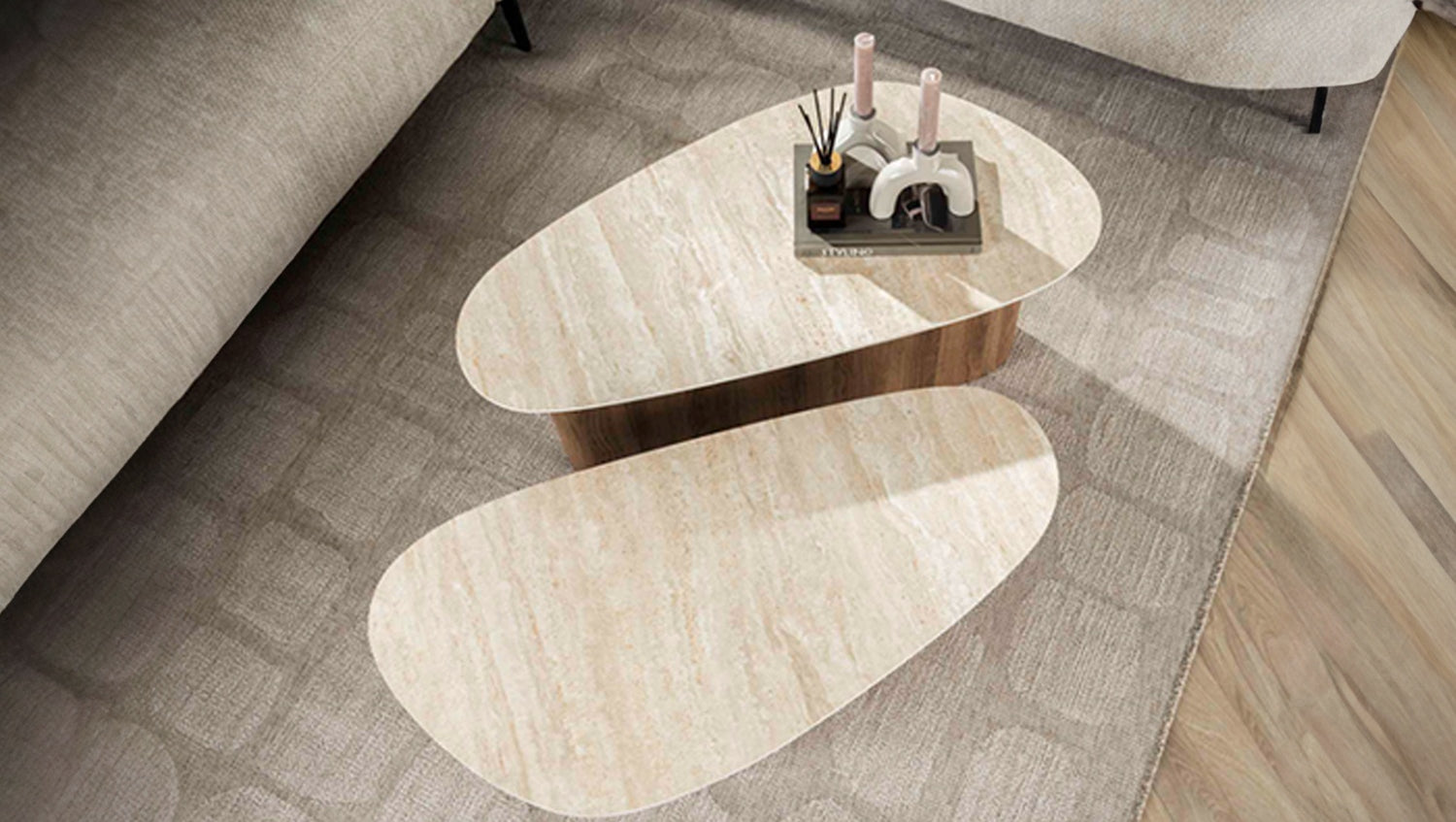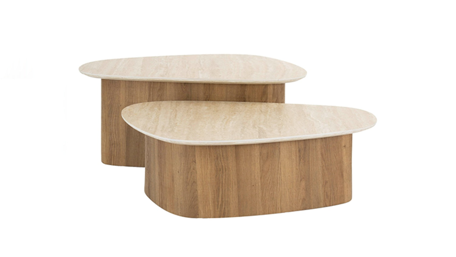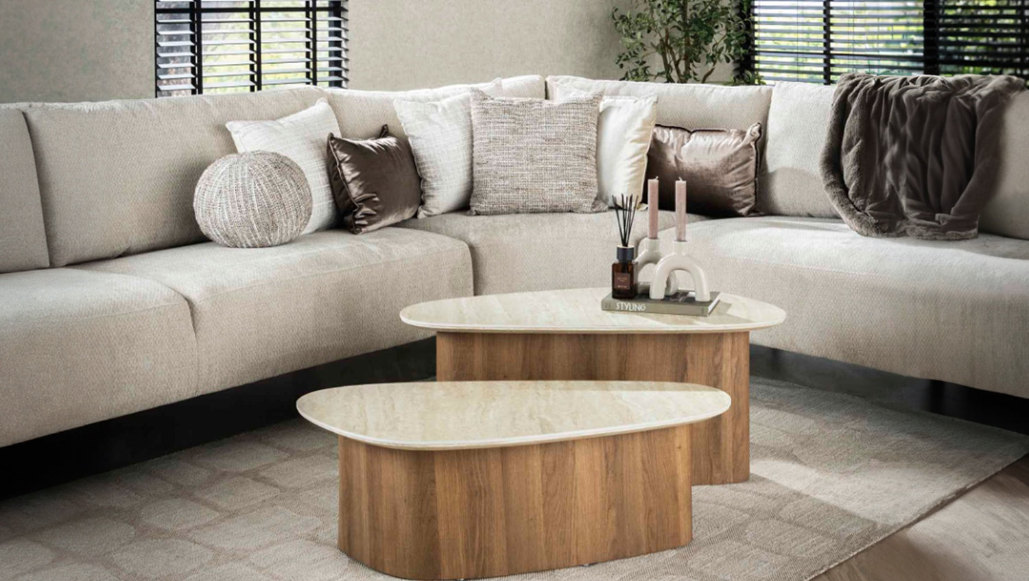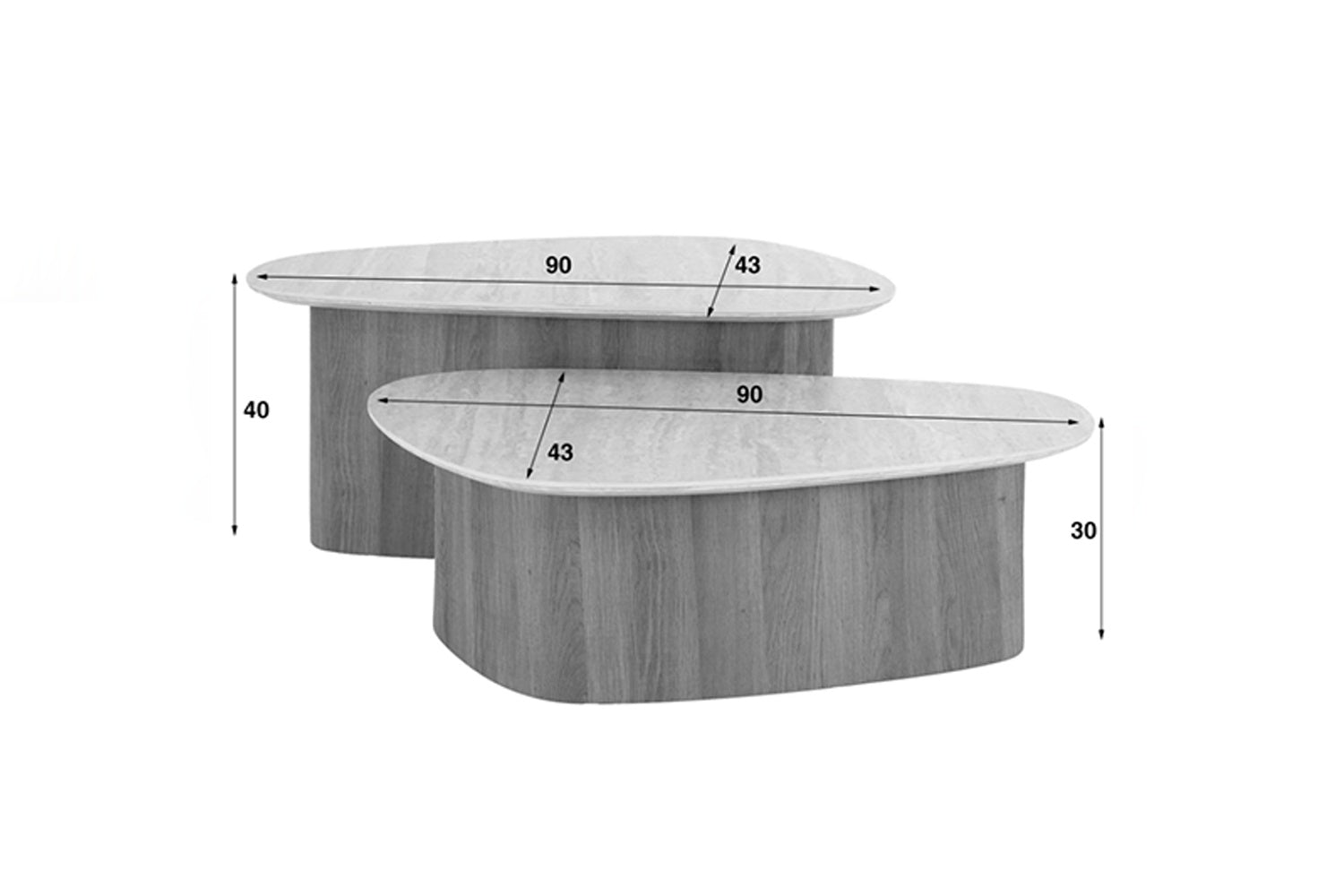 El elegante juego de mesa de centro triangular PRETO de KAWOLA combina una robusta estructura de madera con un lujoso tablero de cerámica de aspecto travertino, lo que le confiere un aspecto sofisticado, perfecto para interiores modernos y clásicos. Estas mesas son versátiles y funcionales, ¡un verdadero must-have! El juego consta de dos mesas. Ambas mesas tienen una superficie de 90 x 43 cm, con una altura de 40 cm y 30 cm respectivamente. Ya sea moderno, rústico o clásico, el juego de mesa de centro PRETO se adapta sin esfuerzo a cualquier estilo de decoración gracias a su aspecto atemporal. Ideal como centro de mesa con estilo en el salón y una auténtica atracción para los amantes de los muebles de alta calidad.