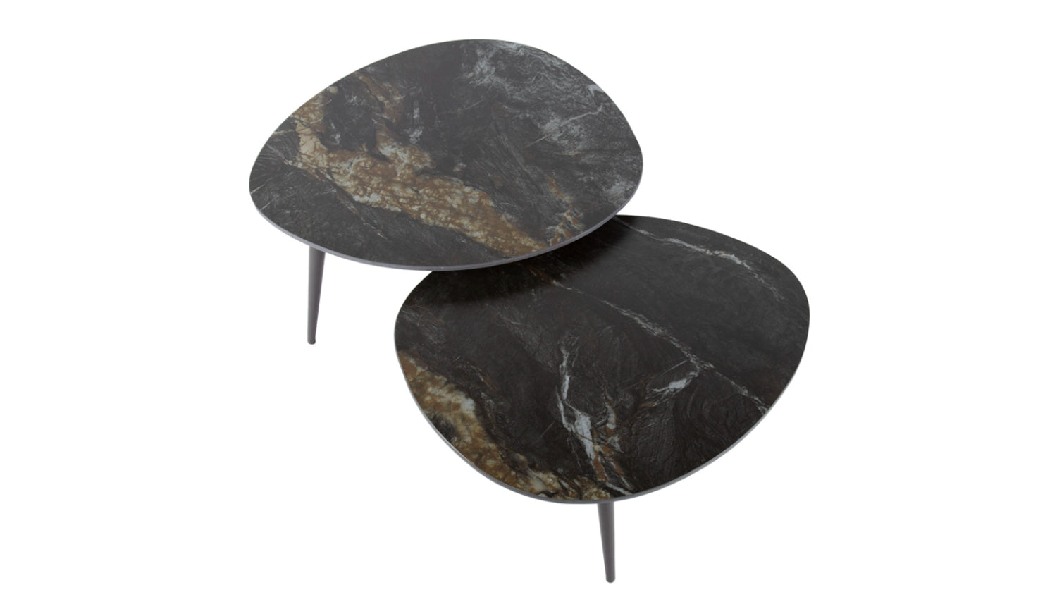 El elegante juego de mesas de centro PONTE de KAWOLA, de formas orgánicas, combina una estructura minimalista con un lujoso tablero de cerámica que le confiere un aspecto sofisticado, perfecto para interiores modernos y clásicos. Estas mesas son versátiles y funcionales. El juego consta de dos mesas. Ambas mesas tienen una superficie de 70 x 58 cm, con una altura de 40 cm y 35 cm respectivamente. Ya sea moderno, rústico o clásico, el conjunto de mesas de centro PONTE se adapta sin esfuerzo a cualquier estilo de decoración gracias a su aspecto atemporal. Ideal como centro de mesa con estilo en el salón y una auténtica atracción para los amantes de los muebles de alta calidad.