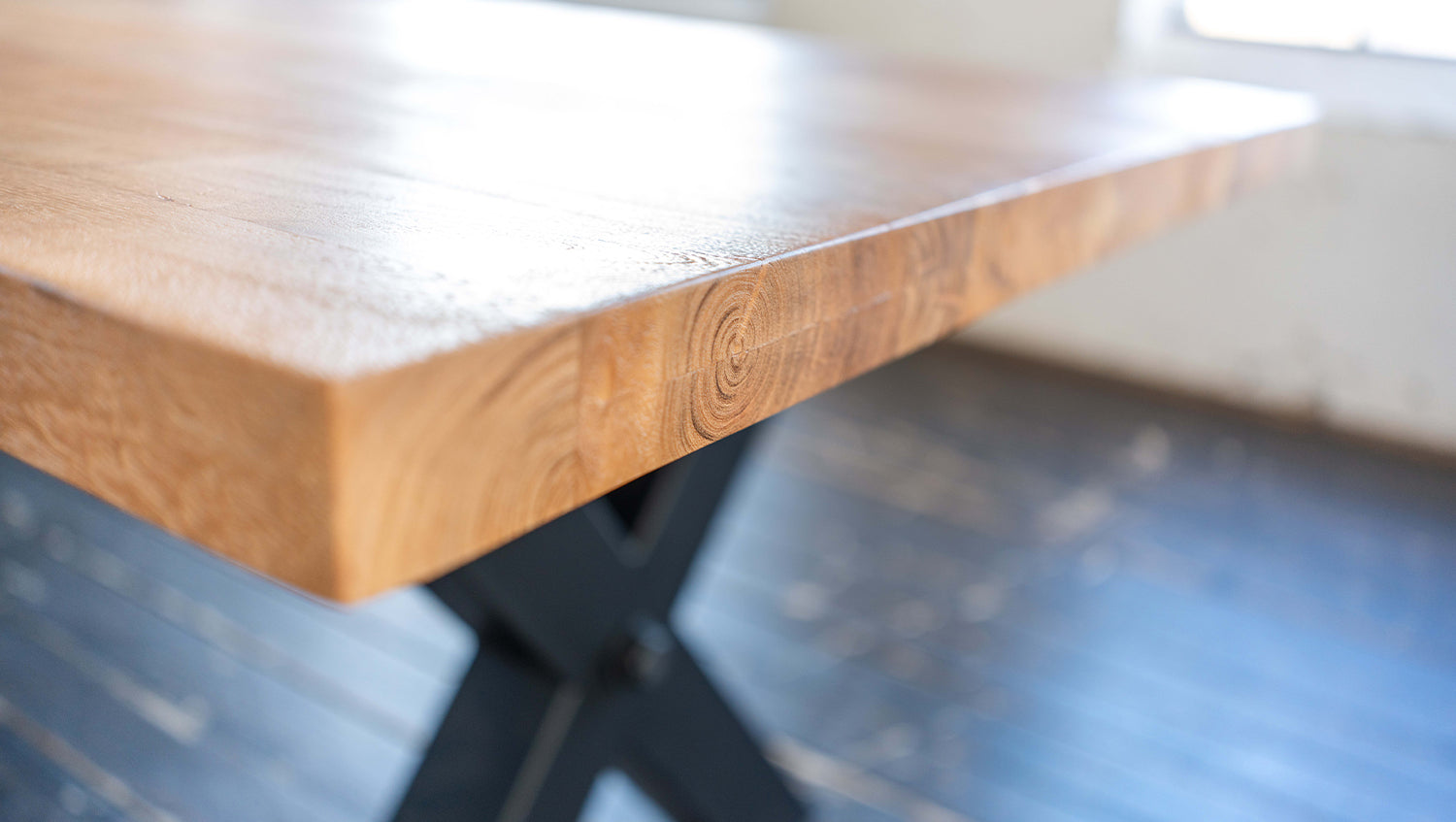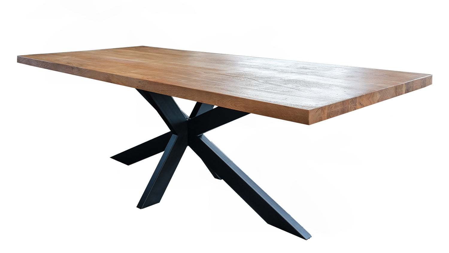 La mesa de madera maciza SELVA de KAWOLA combina un diseño atemporal con materiales naturales. La superficie del tablero de madera maciza de acacia está cepillada y es de color roble, lo que acentúa a la perfección las vetas naturales de la madera. El borde recto acentúa el diseño moderno y crea un aspecto armonioso y despejado, ideal para comedores contemporáneos. Disponible en longitudes de 200 cm, 220 cm, 240 cm, 260 cm, 280 cm y 300 cm, esta mesa de madera maciza ofrece mucho espacio para veladas sociables o cenas elegantes. El bastidor de base soldado rústico de diseño industrial, pintado de negro y con una llamativa base de araña, aporta a la mesa un toque moderno e industrial. La Mesa de comedor SELVA no es sólo un mueble, sino una declaración de intenciones de alta calidad y diseño moderno. Perfecta para quienes desean combinar naturalidad y urbanidad en su hogar. Lleve un trozo de naturaleza a su comedor.