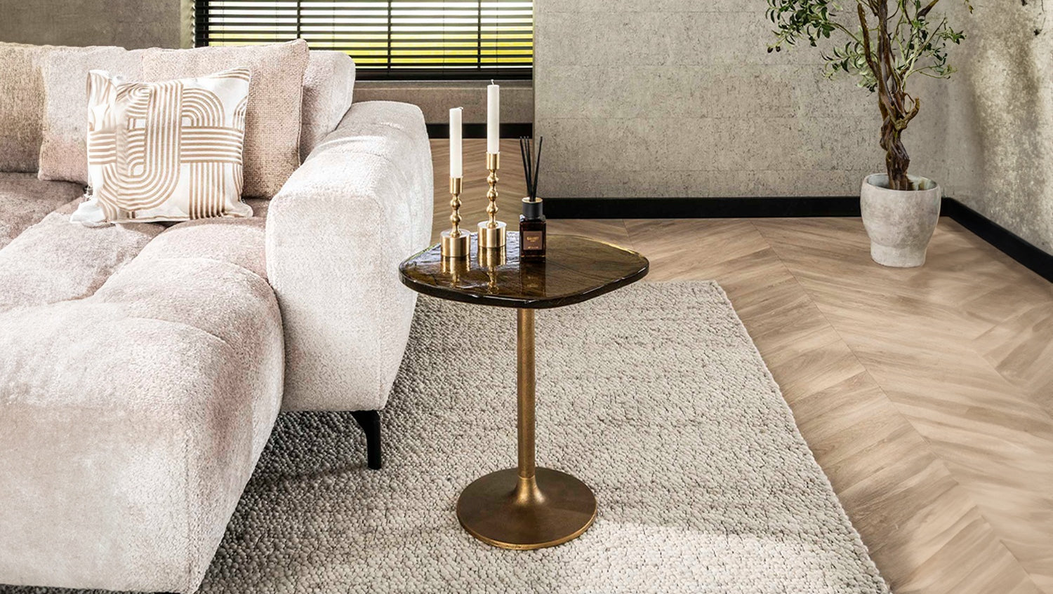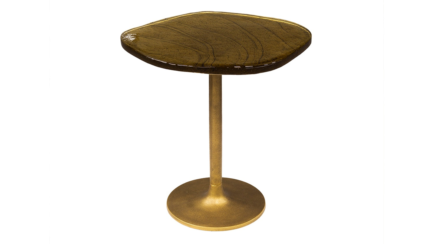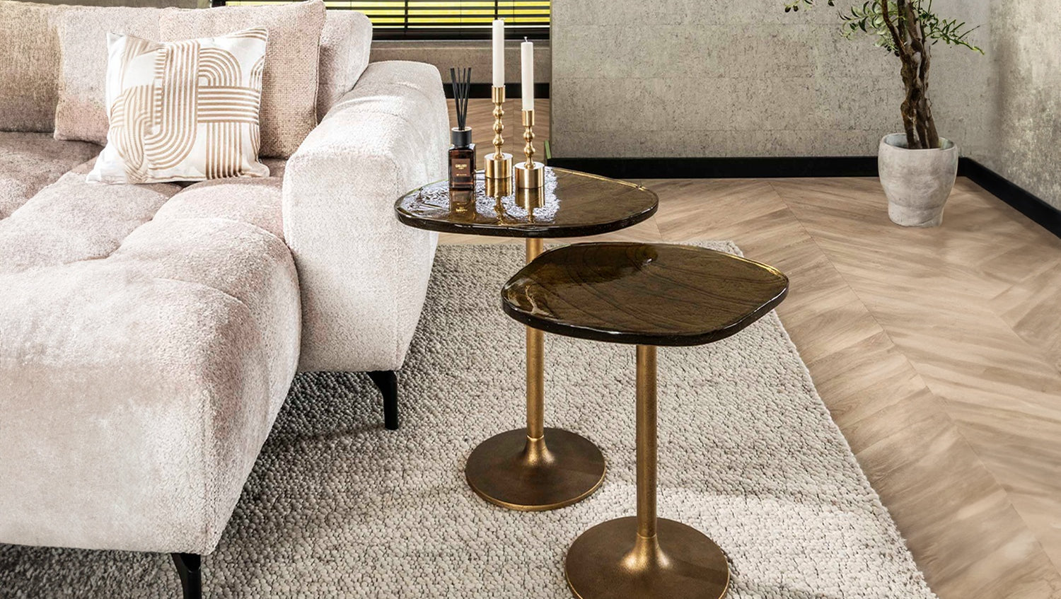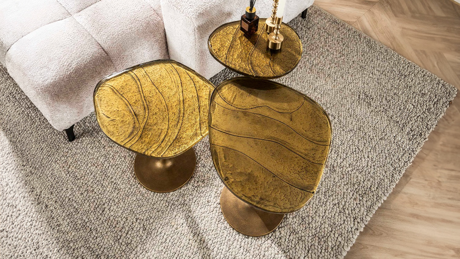 La mesa auxiliar DARI S de KAWOLA aporta elegancia y estilo a su hogar. El tablero de cristal estirado impresiona por su superficie suavemente ondulada y sus finas irregularidades, que recuerdan a la artesanía tradicional y hacen que cada mesa sea única. La robusta estructura metálica está acabada en elegante dorado antiguo o cobre y confiere a la mesa un encantador carácter vintage. Con su tamaño compacto, la mesa es ideal para exponer con estilo bebidas, libros o adornos. Gracias a su esbelto diseño, encaja a la perfección junto a su sofá, su sillón favorito o como mueble de acento en el recibidor. Ya sea como pieza independiente o en combinación con otras mesas, esta mesa auxiliar es una declaración de diseño en cualquier lugar. Déjese inspirar por la armoniosa combinación de cristal y metal y aporte un toque de lujo a su hogar con DARI.