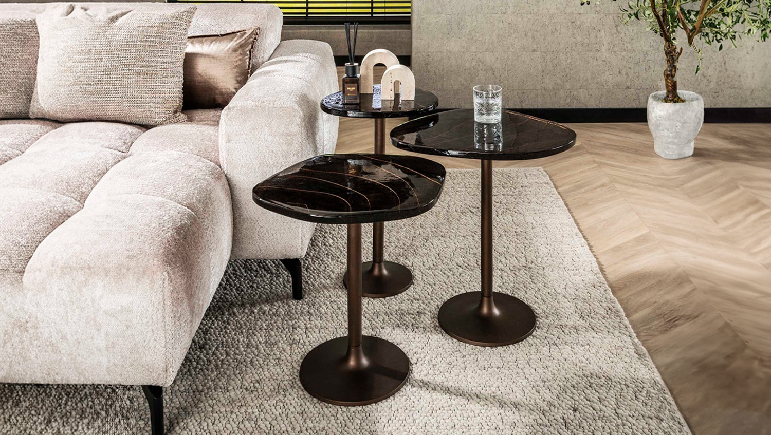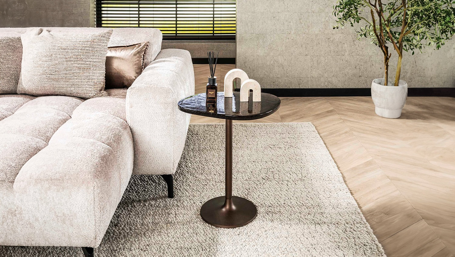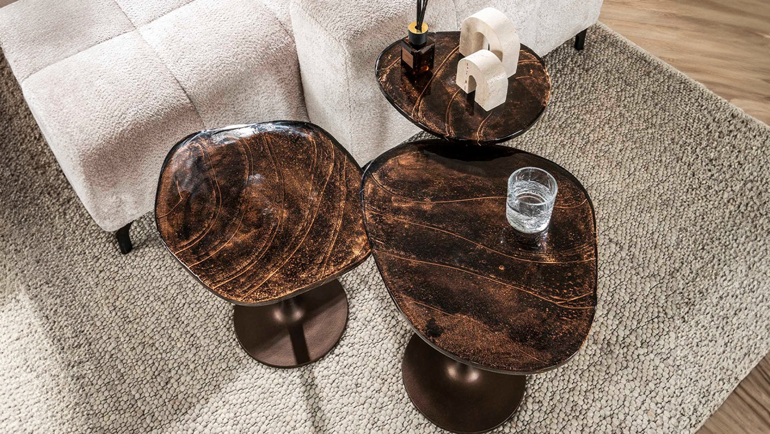 La mesa auxiliar DARI M de KAWOLA es un elegante centro de atención que añade un toque de sofisticación a cualquier habitación. Su tapa redonda de cristal estirado impresiona con una superficie sutilmente ondulada y finas irregularidades creadas por el proceso de fabricación tradicional. Esto confiere a cada pieza su propio carácter y le confiere un aspecto de especial calidad. El armazón de metal en cobre antiguo de cálido brillo confiere a la mesa un toque sofisticado y la convierte en un auténtico punto culminante del diseño. DARI es ideal para utilizar junto al sofá como práctico estante para bebidas o aperitivos o para exponer con estilo objetos decorativos. Gracias a su forma esbelta y discreta, puede integrarse con flexibilidad en diversos conceptos de espacio sin recargar la habitación. Ya sea como mesa de acento en el salón, en el rincón de lectura o en la entrada, DARI aporta una elegancia atemporal y un toque de lujo a su hogar.