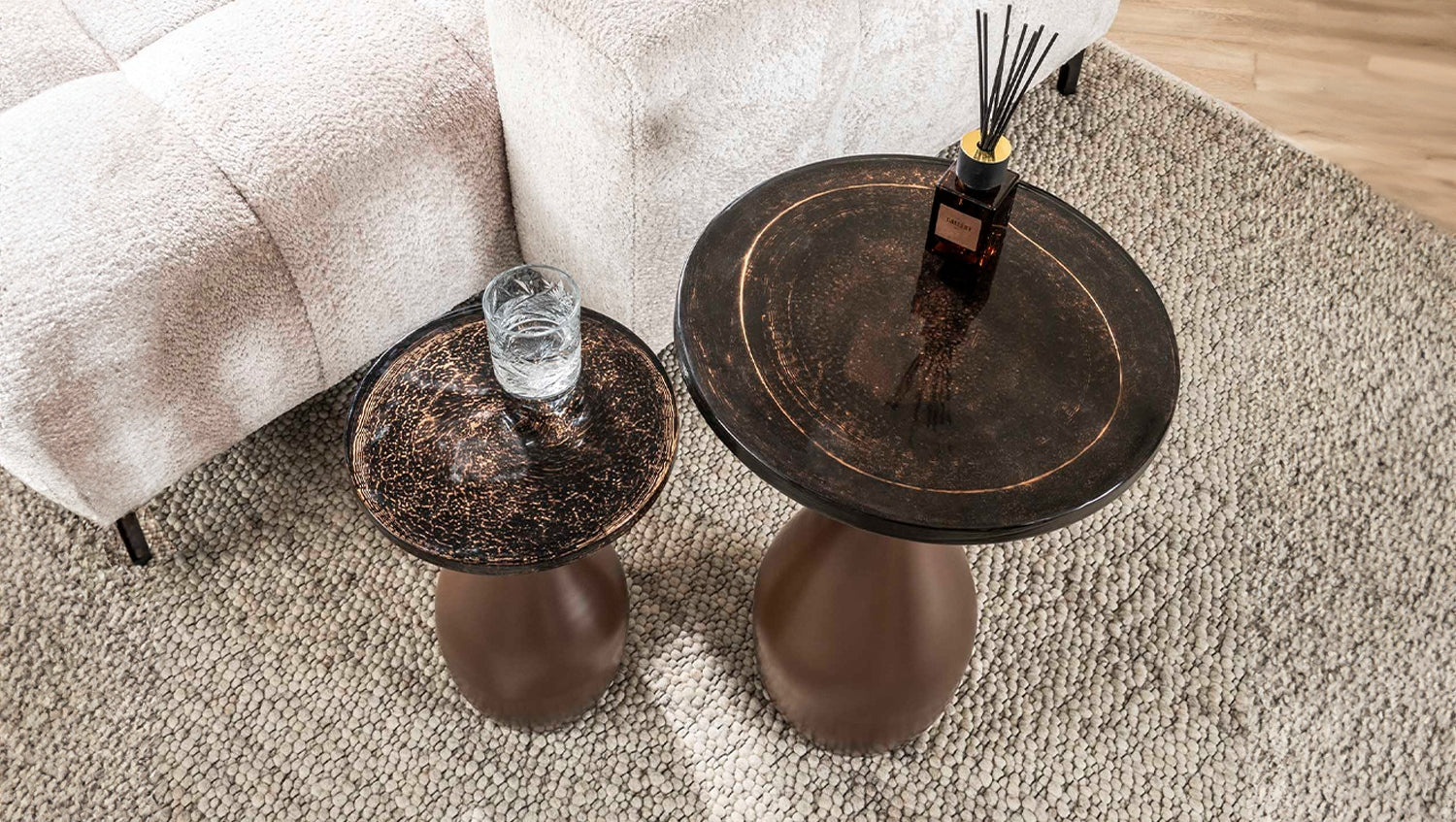 KAWOLA mesa auxiliar MOKKA S cristal cobre
