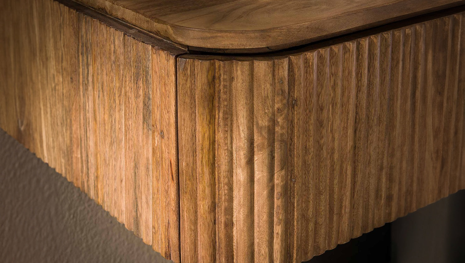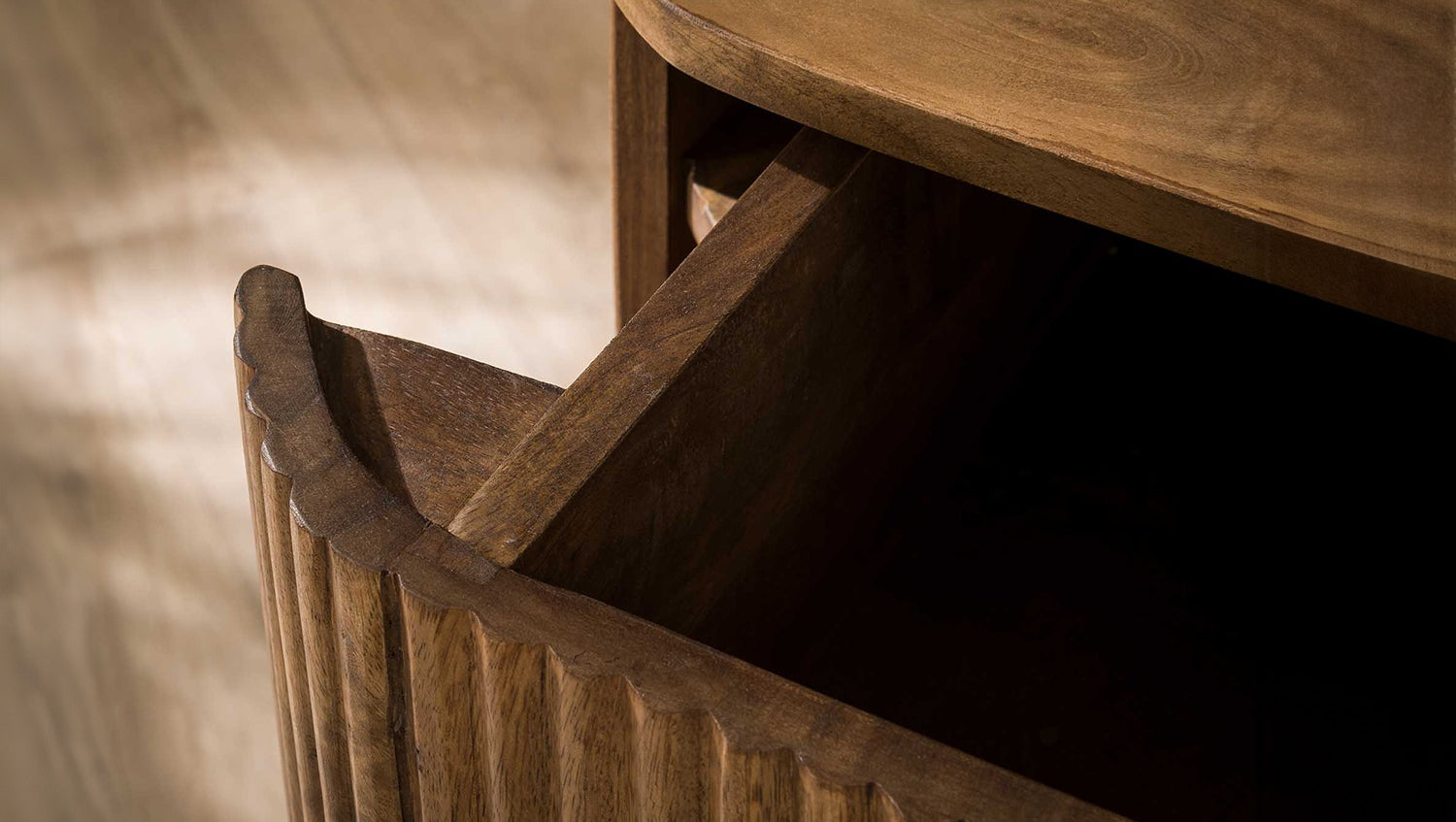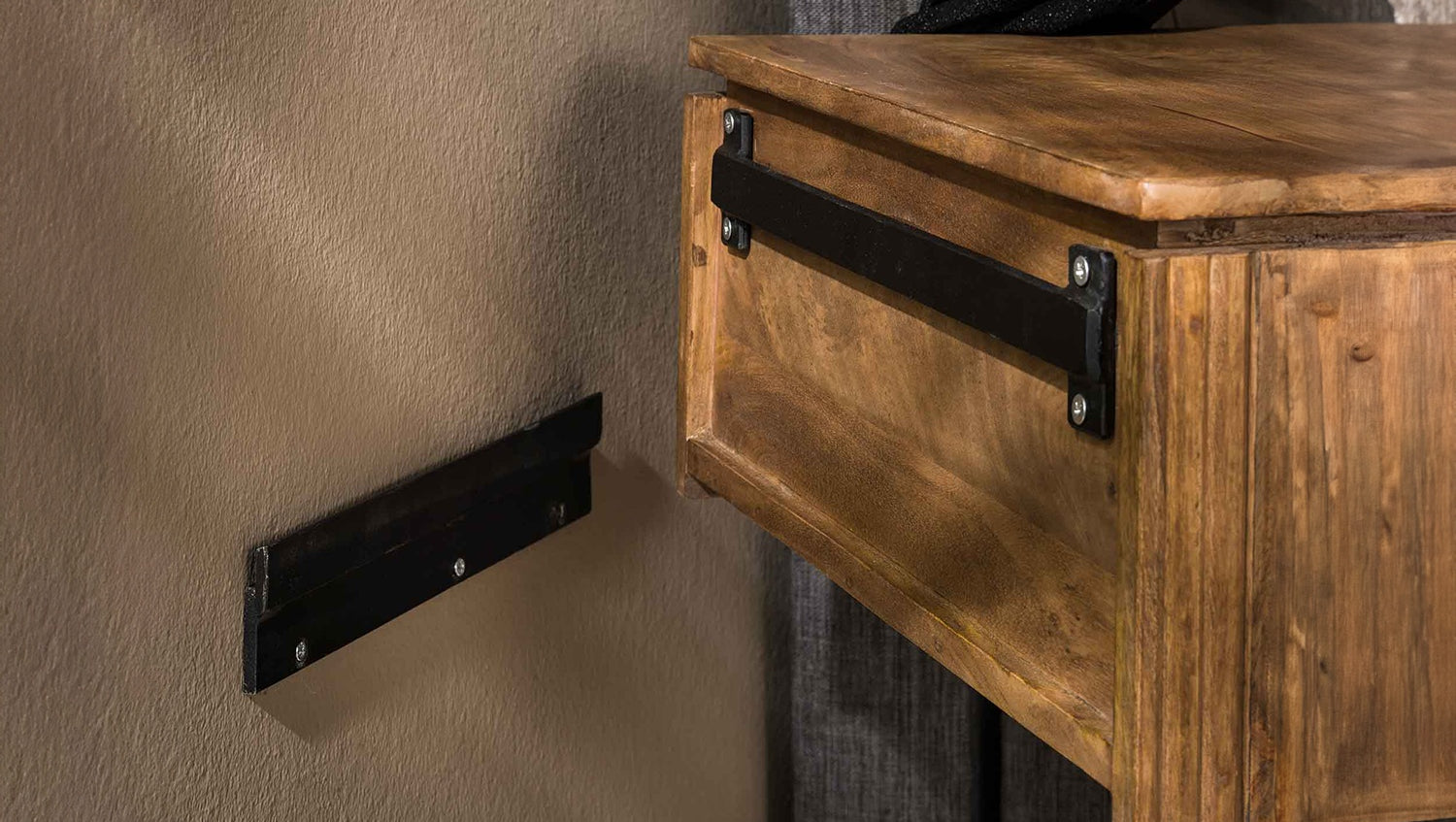 KAWOLA mesita de noche HEVE colgante redondeada madera maciza de mango natural 1 cajón