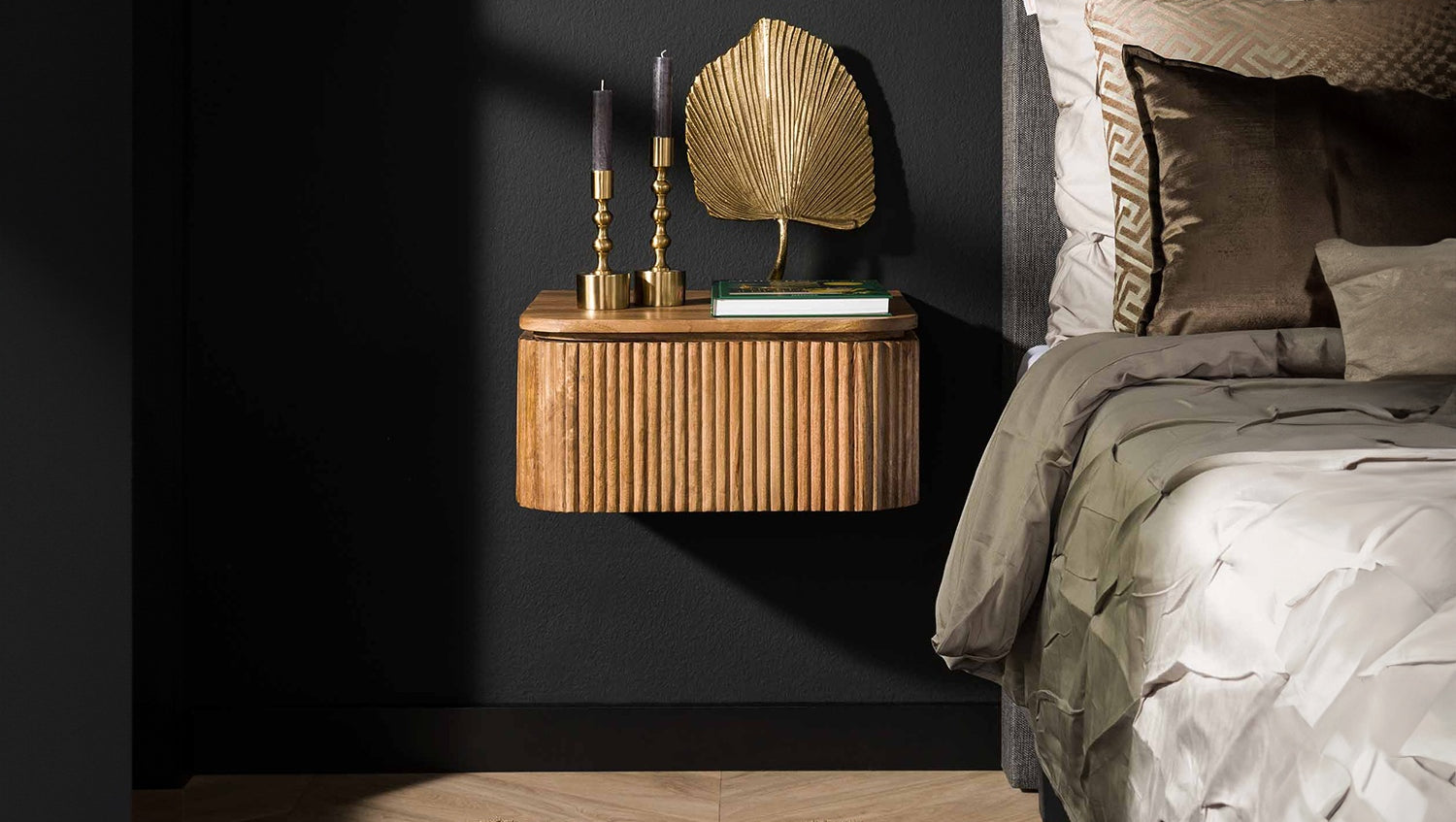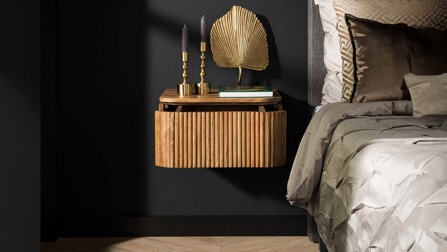 La mesilla de noche HEVE de KAWOLA impresiona por su diseño moderno y sus materiales sostenibles. Fabricada en madera de mango de alta calidad con acabado en color arena, aporta elegancia natural a su dormitorio. El elegante diseño ondulado confiere al mueble un aspecto especial. Un práctico cajón ofrece espacio para objetos personales como libros, gafas o teléfonos móviles. Gracias al montaje en la pared mediante un listón estable con tres orificios para tornillos, la mesilla de noche HEVE parece flotar y crea una sensación de amplitud que ahorra espacio. Con sus dimensiones compactas de 45 x 40 x 21 cm, es ideal para dormitorios modernos, habitaciones pequeñas o como alternativa elegante a la clásica mesilla de noche. La mesilla de noche de pared HEVE combina funcionalidad, diseño y sostenibilidad: perfecta para quienes valoran la calidad y la estética.