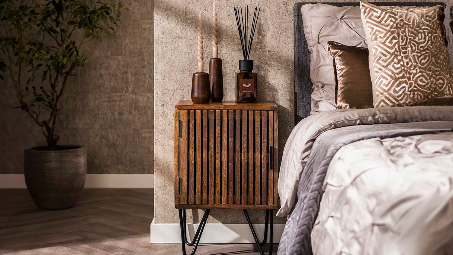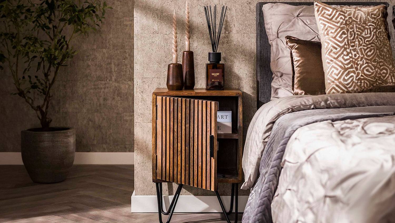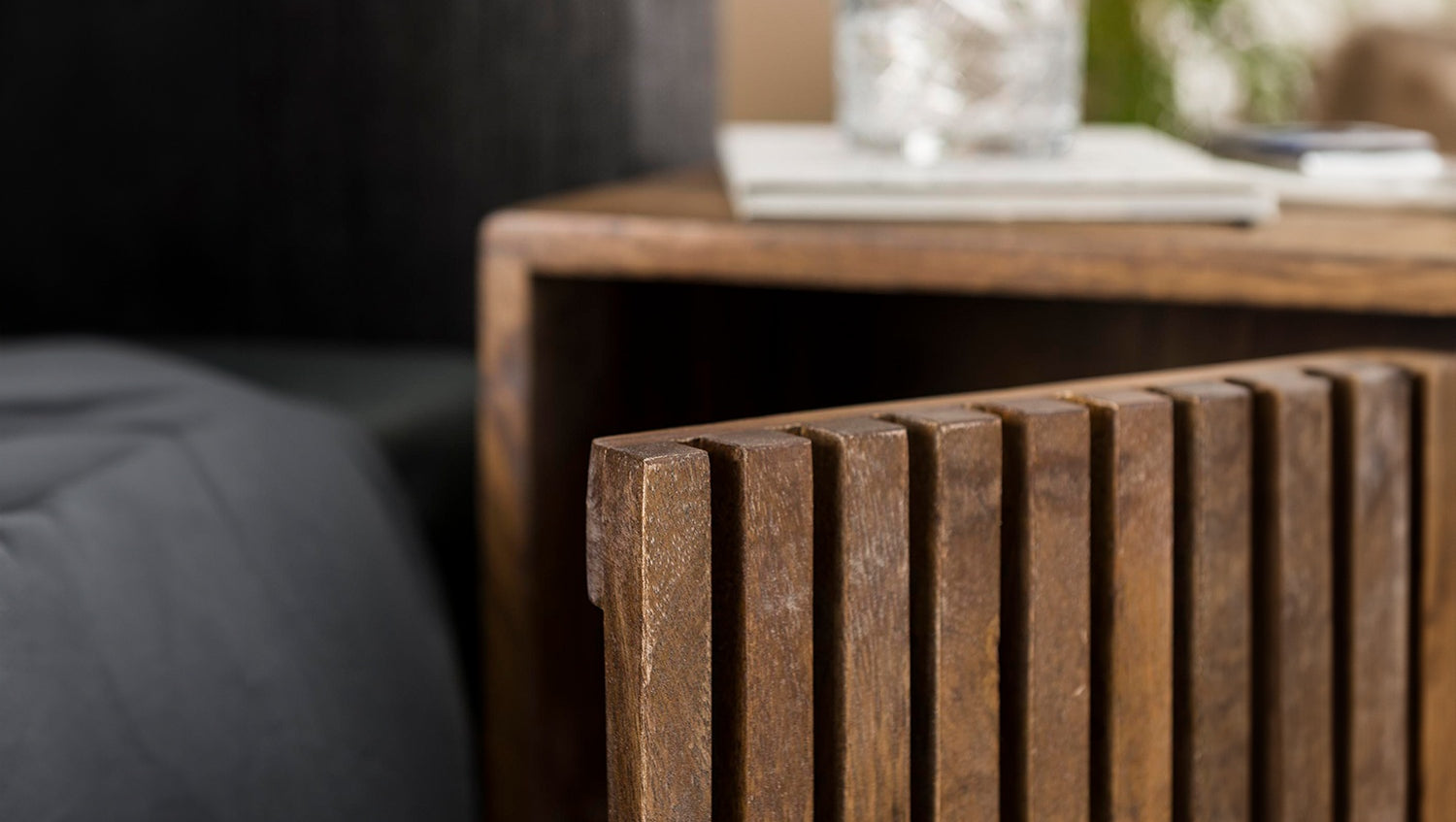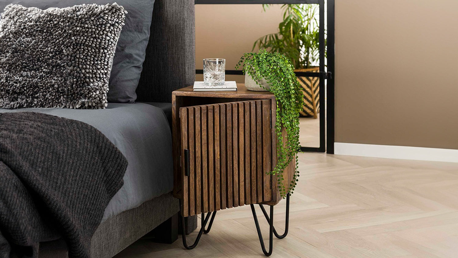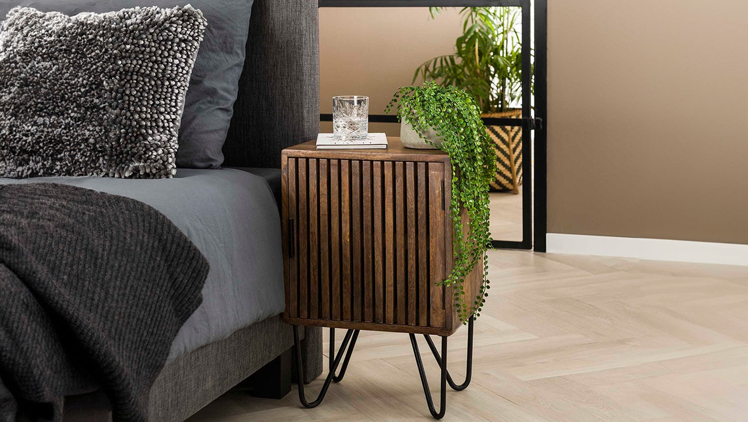 El juego de mesitas de noche KAWOLA SWEAK, compuesto por dos mesitas, impresiona por su aspecto natural y su diseño funcional. Fabricada en madera de mango de alta calidad con acabado en color arena, aporta calidez y estilo a cualquier dormitorio. El juego consta de una versión izquierda y otra derecha, perfectamente combinadas para ambos lados de la cama. Cada consola de mesilla de noche ofrece una práctica superficie de almacenamiento para libros, adornos u objetos personales. Con unas dimensiones compactas de 40 x 30 x 60 cm, el conjunto es ideal para interiores modernos en los que se requiere funcionalidad y estética. Ya sea como elegantes mesillas de noche o como mesas auxiliares en el salón, el conjunto SWEAK es versátil y llama la atención.
